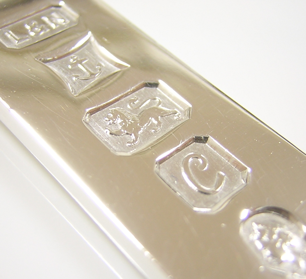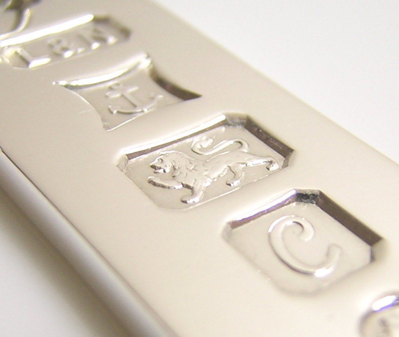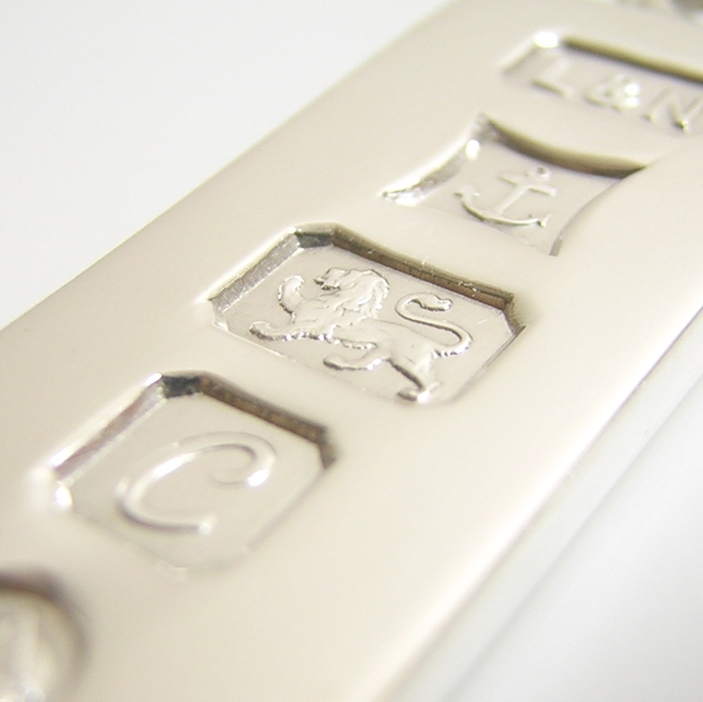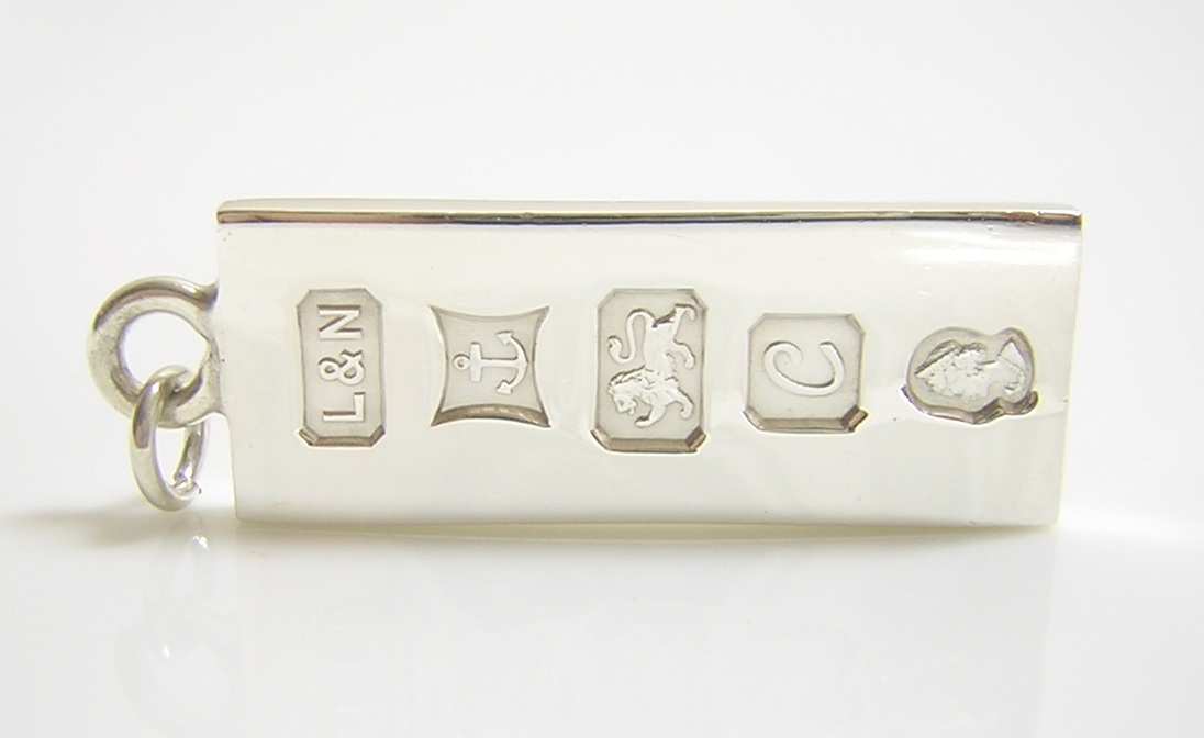英国バーミンガム製の銀製ホールマークペンダントトップでございます。 ホールマークは順に【L&N】のメーカーズマーク、バーミンガムの【アンカー】のアセイマーク、 スターリングシルバー製を示す【ライオンパサント】、1977年のデートレター【C】、 エリザベス二世の戴冠25周年記念のシルバージュビリーマークが刻印されております。 | |