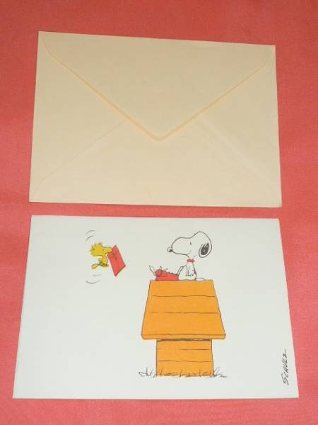 ☆商品説明☆ご覧いただきありがとうございます^^ スヌーピー&ウッドストックのメッセージカード&封筒です。レトロなスヌーピーとウッドストックの絵柄でと~ってもかわいいですよ^^ 大きさはタテ 約9.5cm、ヨコ 約13.5cmです。たいへん古いものですがコレクション用として袋に入れたまま大切に保管していましたので新品、未使用でたいへんきれいな状態ですが家庭での保管ですのでご理解いただける方のみご入札をお願い致します。 ☆発送方法☆ 定形外郵便、ゆうぱっく ☆コメント☆ ノークレーム、ノーリターンでお願いします。ご不明な点がございましたらお気軽にお問合わせ下さい。他にもスヌーピーグッズたくさん出品しております☆ 良かったらご覧下さいね*^^*