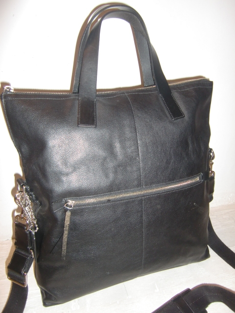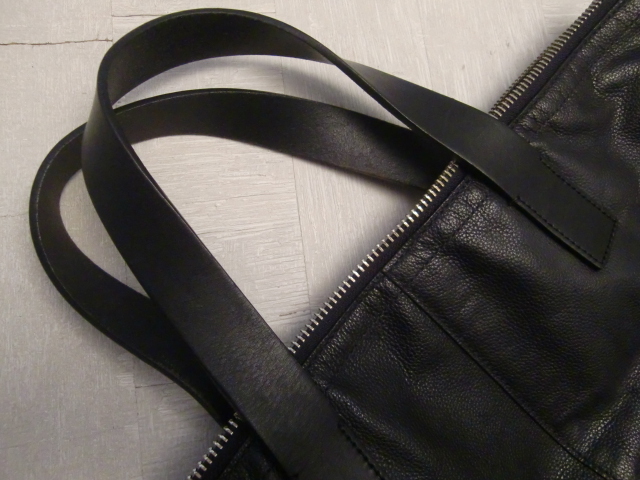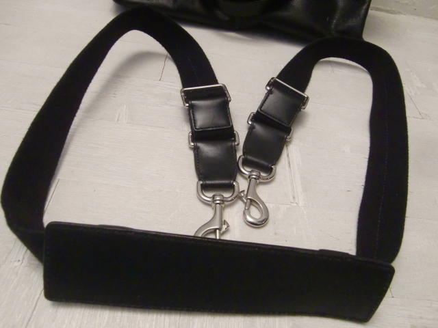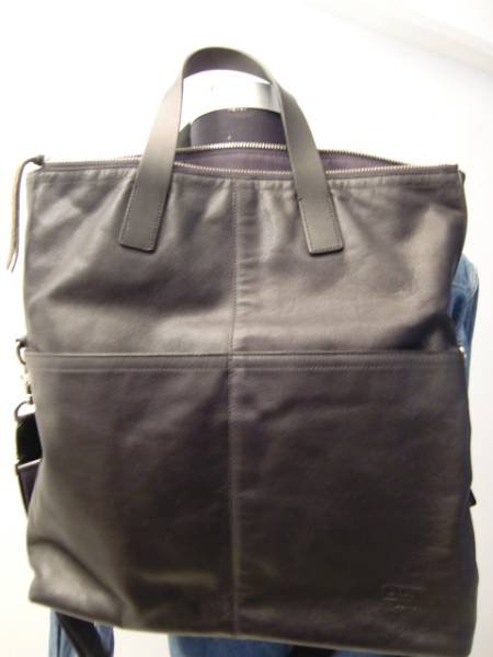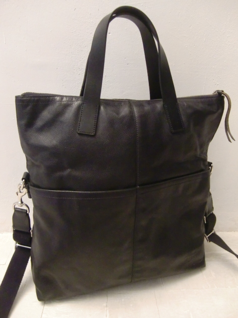 面白いバッグです。肩掛け時にも上部を内に折りこんで大きさが調節できます。