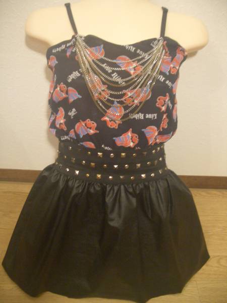 glad newsの商品です♪ サイズはR、約脇下見幅33(ゴム)、ウエスト29,5(ゴム)、丈紐(調整可)を入れて計って68センチほどです(素人採寸ですので目安でお願いします♪)♪ 素材は、ポリエステル100%で、チュールはナイロン100,1番上のスカート部分は合皮です♪ ウエスト部分のスタッズと胸元のチェーン、それにローリングストーンズ風のrockな柄も格好良いです(#^.^#) 定価7245円☆ 格安ですので神経質でない方、ncnrで御了承いただける方のみ、どうぞよろしくお願い致します♪ 他にも山出品しておりますので是非ご覧下さい(^_-)-☆ 同梱は大歓迎です♪ 必ず自己紹介をご覧くださいませ!! |