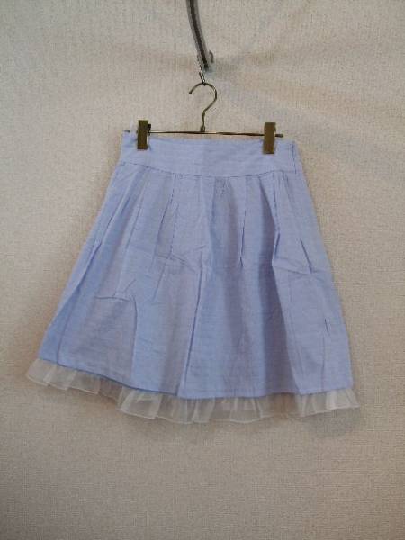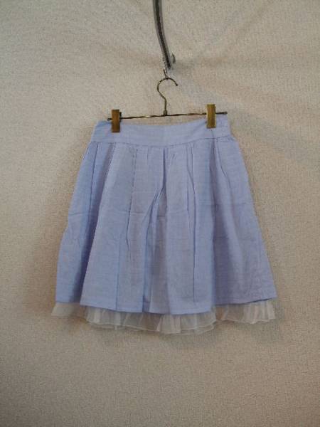 商品紹介 | 裏地の裾にチュールのような透け感のあるフレア生地が付いた カワイイスカートです。 本体は水色で、地模様でボーダーが織り込まれた生地です。 《素材》 表地:綿100% 裏地・別布:ポリエステル100% |