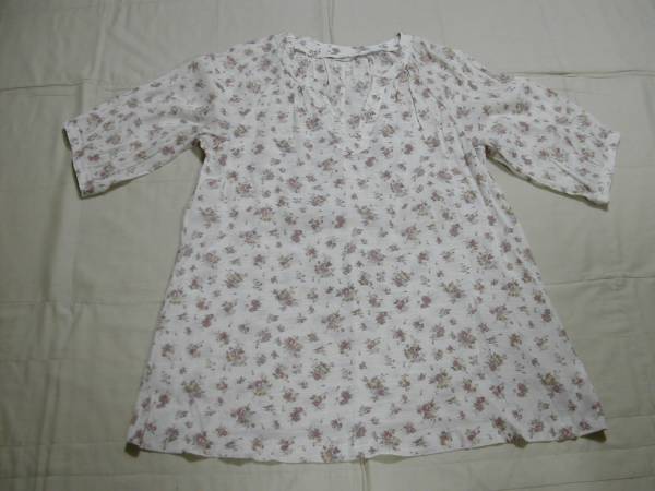 ■美品:ハンドメイド?小花柄ゆったりチュニック   Dn853