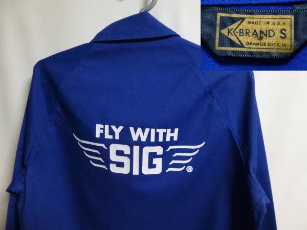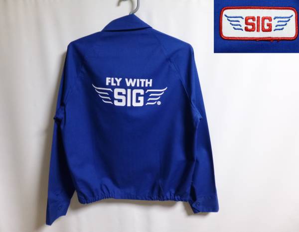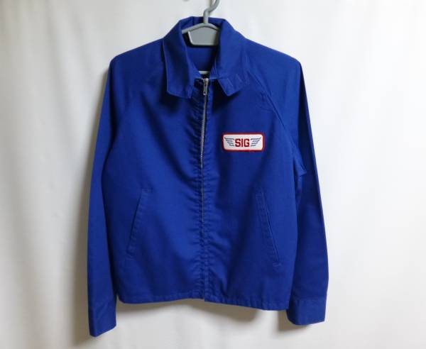 | コメント | USA製。全体的なデザインはスウィングトップ系で、フロントはジッパー(PRIDE製)、ポケットはおなかの両側に付いています。左ムネにワッペン、背中にプリントが入っています。SIG PLANESという、アメリカのラジコン飛行機のチームのジャケットのようです。 |
