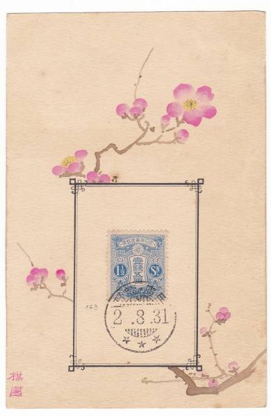 田沢大正白紙1銭5厘貼はがき 櫛型印 兵庫・龍野/2.8.31/3星 初日印