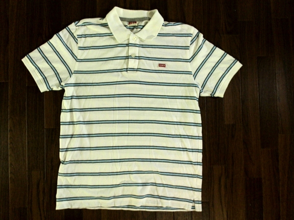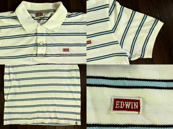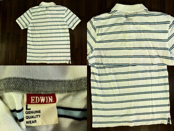 | エドウィン【EDWIN】半袖ポロシャツ L 鹿の子 ボーダー 白水色 | |