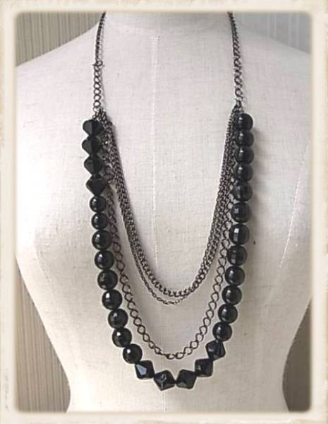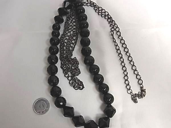 黒いビーズ玉のロングネックレス ひし形に丸とデザインが可愛いです