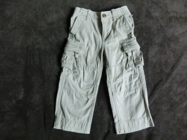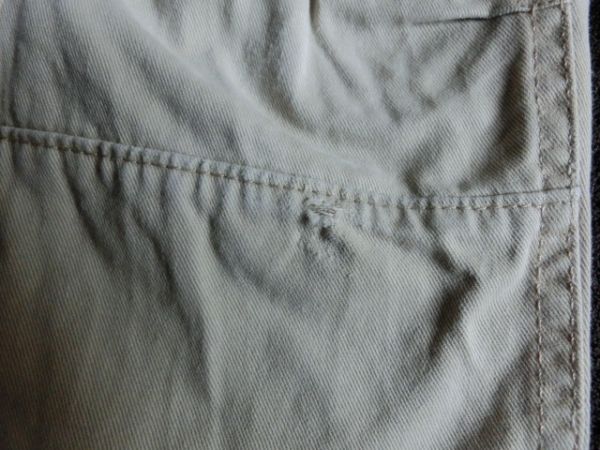 ★画像3の真ん中のように前右ひざ下あたりに破れがあるのと、ポケットの淵に生地のすれがあります。