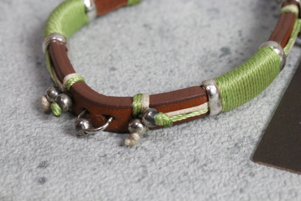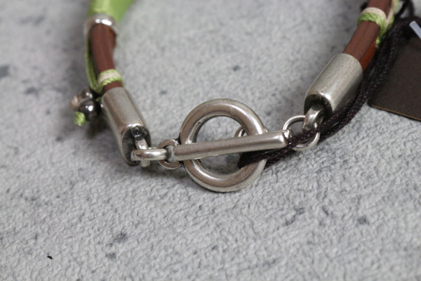 新品コムサメン イタリア製レザーブレスレット薄緑/薄茶定価2万2