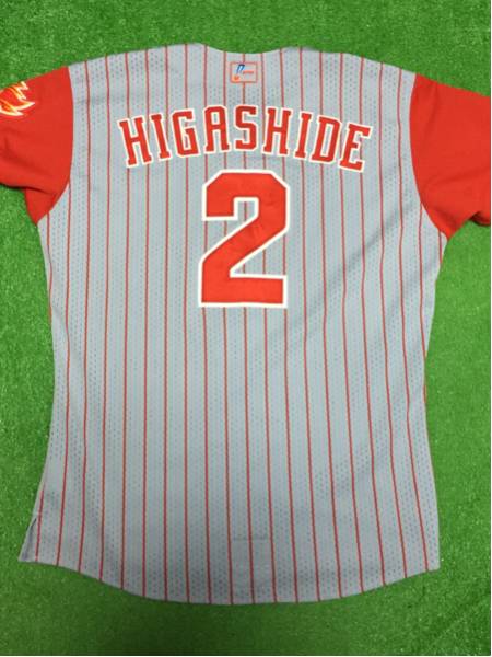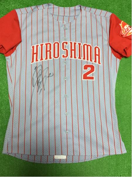 広島の東出選手が’02シーズンに実使用した直筆サイン入りビジターユニフォームです。