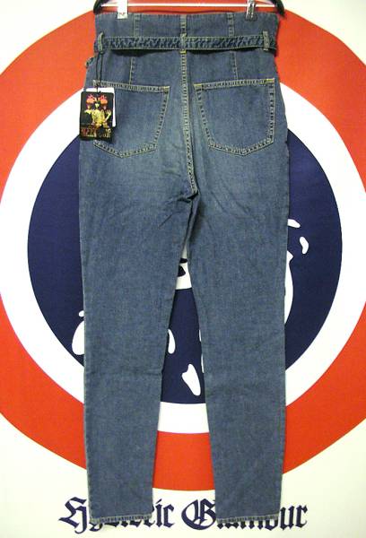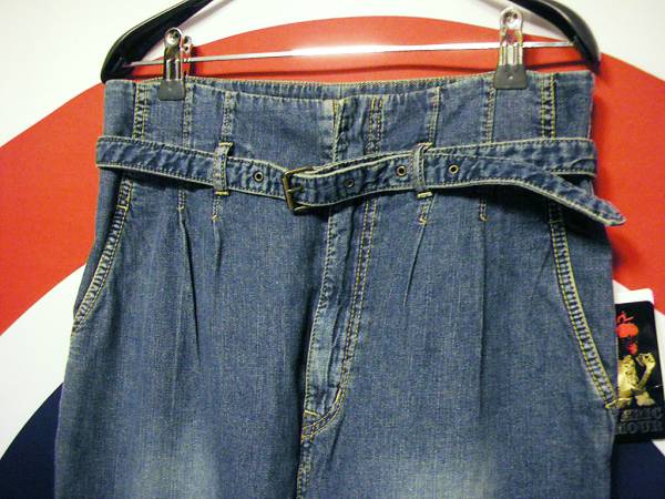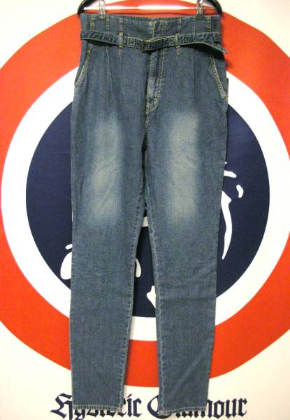 やわらかなライトデニム素材で深い股上にタック入りのテーパードシルエット。