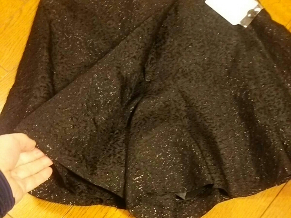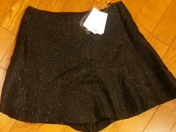 フレア&フロントのラップデザインがスカートのようなショートパンツです。ラメのきいたジオメトリック柄のジャガード素材で、華やかさのあるパンツです。定価18900円だったと思います。ご希望の方に。