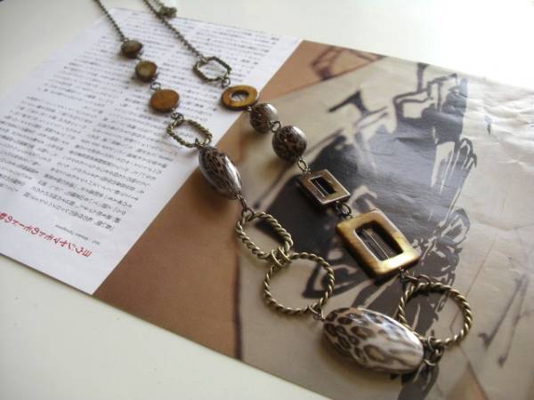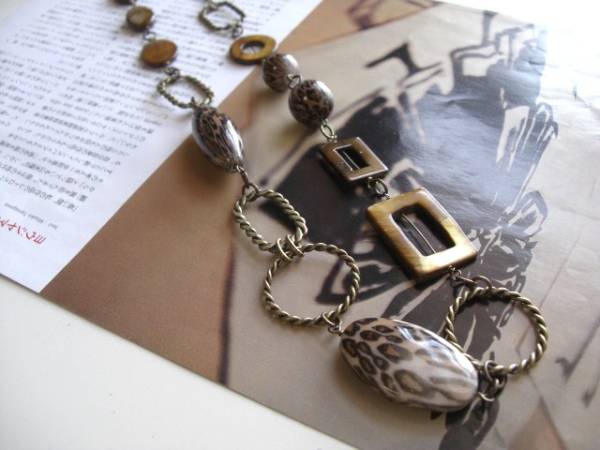 やさしいシルエット・・シリーズです♪豹柄・マニア・・シックな豹柄のネックレスです♪12ミリから 38ミリ位までの丸玉やスクエアやリングやオーバルやナツメのシェルビーズや樹脂ビーズにデザインチェーンを合わせてモードな表情です♪長さは88セン チ+アジャスター10センチで最長98センチ位です♪2連にされても素敵です♪お揃いのネックレスやブレスレットも出品しています♪シンプルで飽きの こないいつまでも着けられるデザインを考えて作り ました♪ハンドメイドをご理解頂いてノークレーム、ノーリターンでお願いします