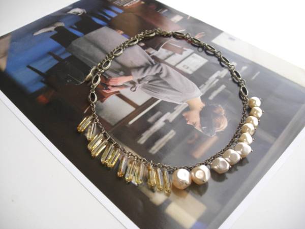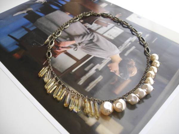 天使の贈り物・・シリーズです♪モード仕様のパール・・個性的なバロックの樹脂パールとチェコビーズのネックレスです♪ふんわりやさしいオフホワイトの樹脂パールにデザインチェコビーズやデザインチェーンを合わせてモードな表情です♪樹脂パールは10ミリから14ミ リ位までのバロックです♪長さは全長56センチ位で調節自由です♪チョーカー風に着けられても素敵です♪お揃いのブレス レットも出品しています♪シンプルで合わせやすいデザインを考えました♪ハンドメイドをご理解いただいてノークレーム、ノーリターンでお願いします♪