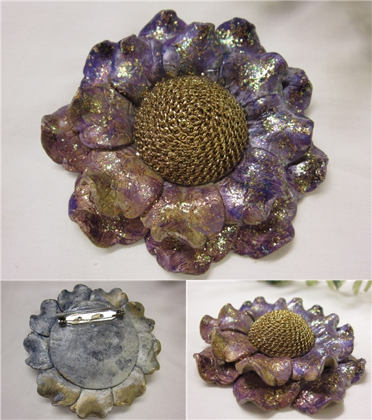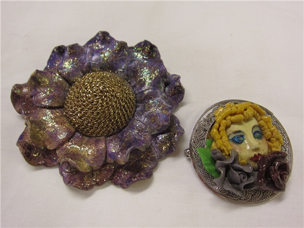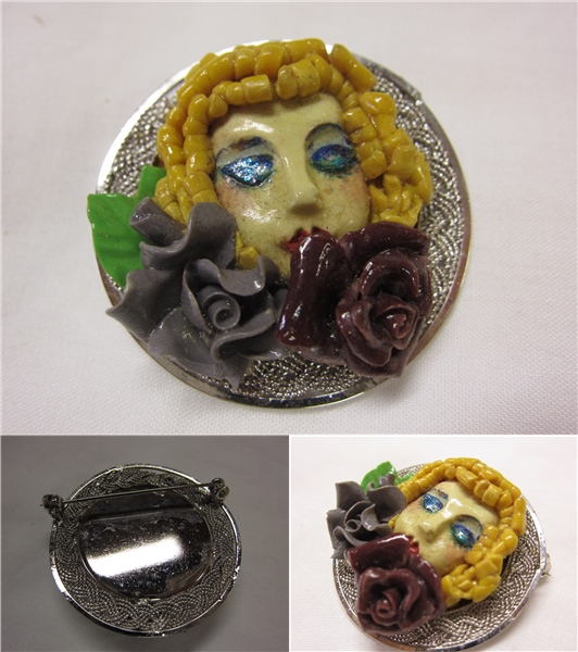 ハンドメイド アンティーク ブローチ2個セット 大輪の花と女性顔