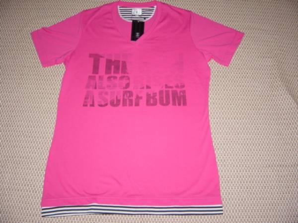 新品未使用のタケオキクチダブル裾プリント半袖Tシャツです。ピンクカラーに、文字にフォトを重ねたこだわりのプリントTシャツで、おしゃれな一品に仕上がっています。ボーダー柄のダブル裾もポイントです。サイズはXL、丈約70cm 肩幅約40cm 袖丈約22cmです。