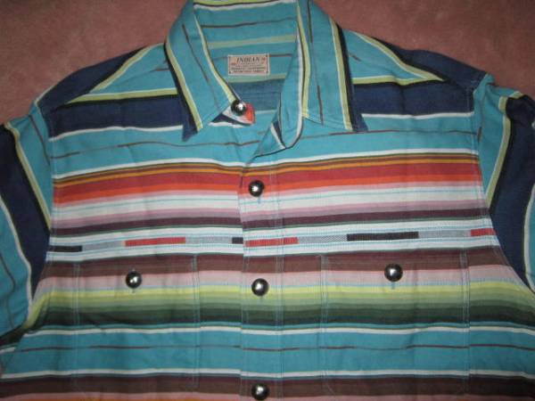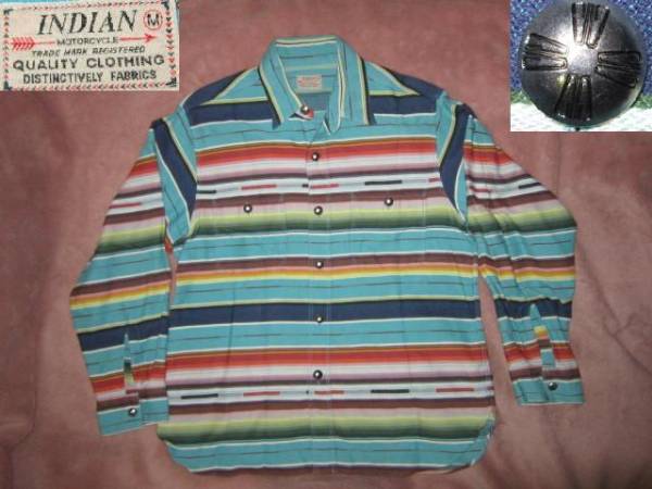 INDIAN MOTORCYCLE インディアン モーターサイクル 東洋エンタープライズ コンチョ ボタン ネイティブ 長袖シャツ M ターコイズ