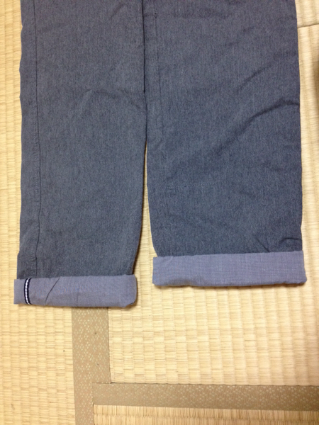 裾を折り曲げられるように二重になっています。折り曲げると股下72になります。