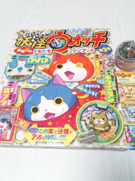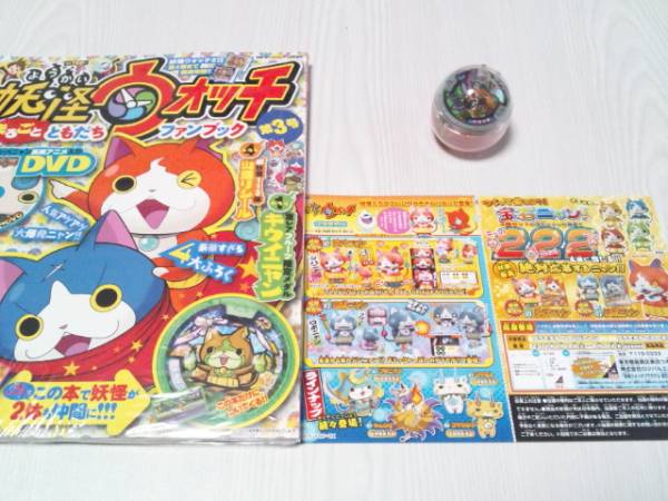 ガチャ妖怪メダル付きのファンブック第3号!メダル宝石ニャン応募ハガキ(無効)付き☆他のメダル付きも出品中。(第三弾-オロチ・りゅーくん 弾四弾-まさむね・かおベロス・)