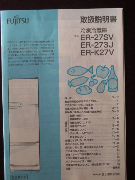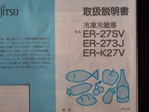 【取扱説明書のみ】FUJITSU ゼネラル冷凍冷蔵庫 ER-27SV、ER273J、ER-K27V