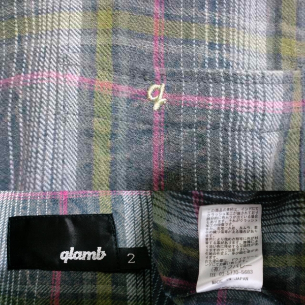 glamb 刺繍チェックネルシャツ グラム Lodge 古谷完 MAGASEEK 長袖 2 M 刺繍 ネルシャツ シャツ チェック