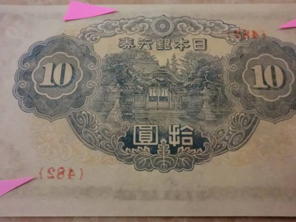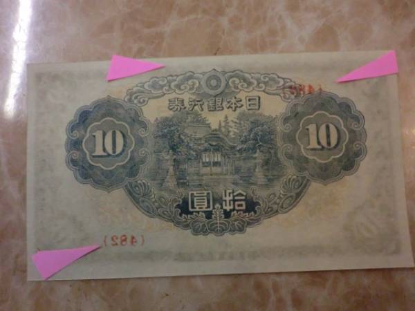 改正不換紙幣10円 3次10円で裏の印刷部分が上よりで表の赤い数字が出ていてです。