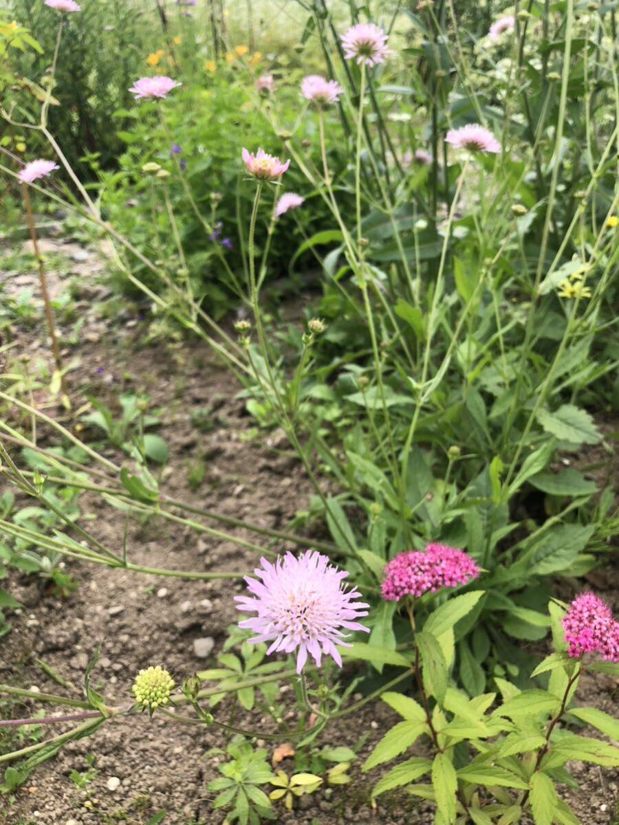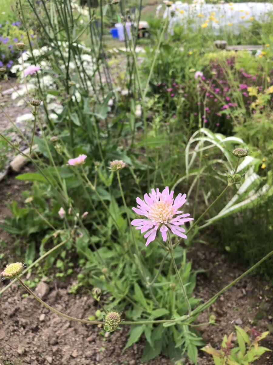 私の庭に毎年咲いてくれるピンク色のマツムシソウです