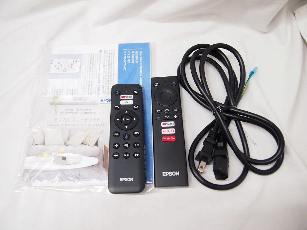 付属品スタートガイド、リモコンx2種、Android TV端末(接続済み)、電源ケーブル