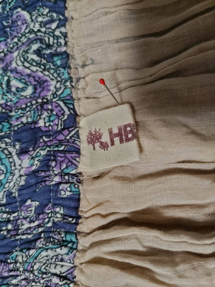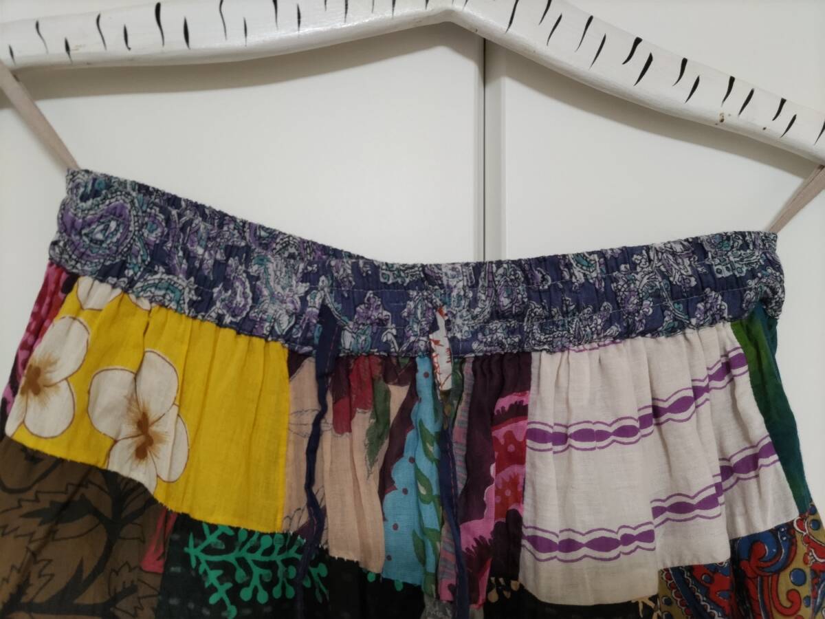 【未使用】 HB インド綿 パッチワーク スカート ふんわりギャザー ロングスカート
