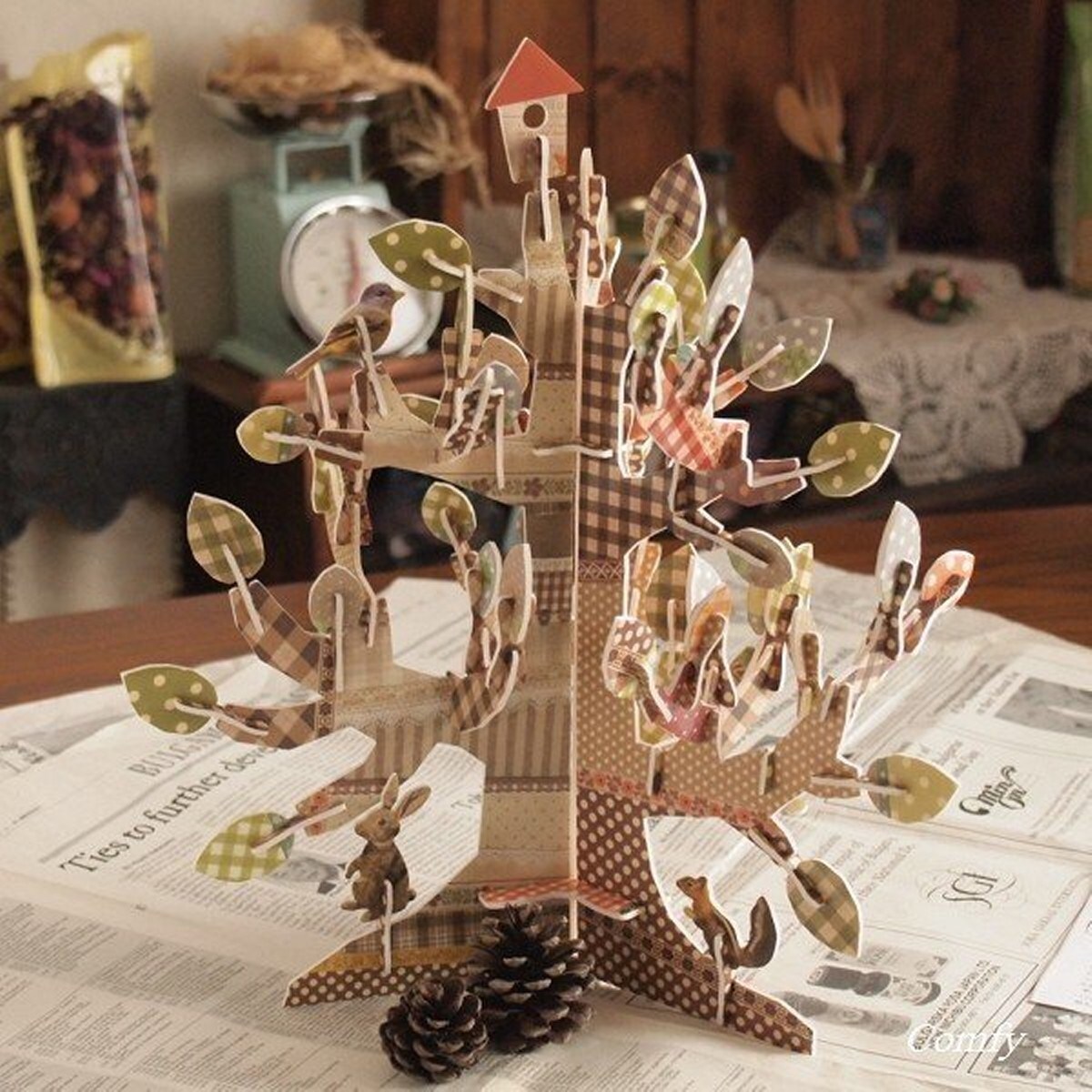 小鳥や森の動物たちのパーツがかわいい、ナチュラルテイストのツリーが完成します♪