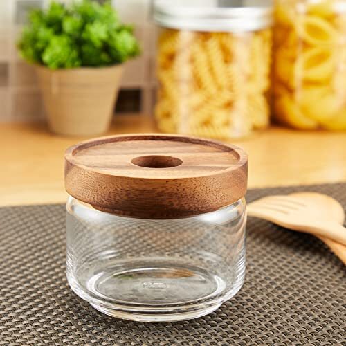 ・素材・材質:本体容器/ソーダガラス、フタ/ウォルナッツの木、表面塗装/植物オイル、フタパッキン/シリコン樹脂(耐熱温度120℃)