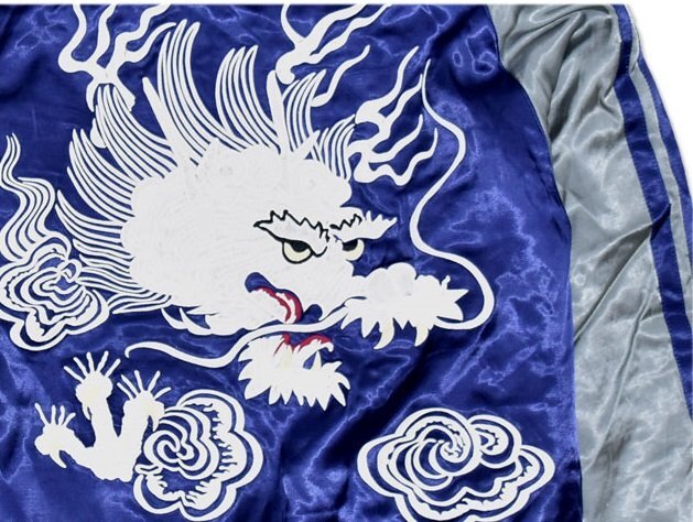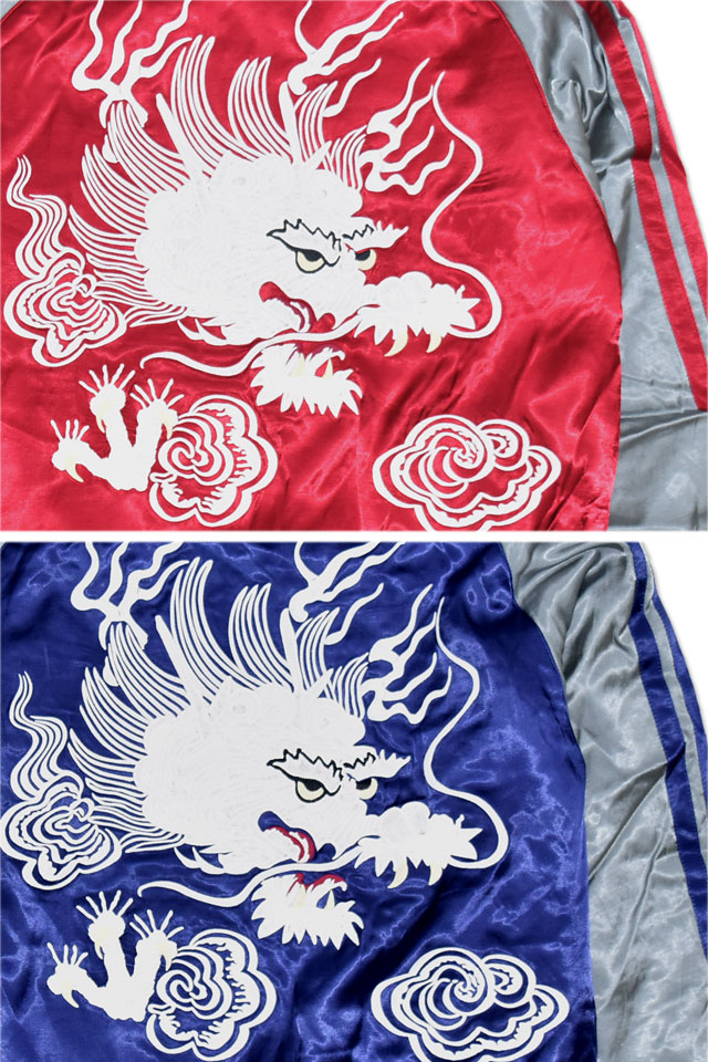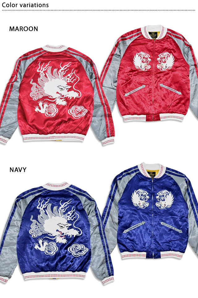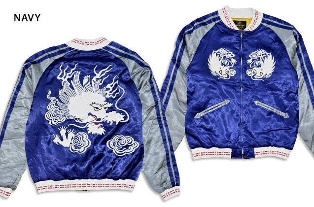 日本で初めてオリジナルのフライトジャケットを生み出し、その後も数々の国内製ミリタリー商品を製造する「ヒューストン」から、レーヨンスカジャン「DRAGON」/RAYON SOUVENIR JACKET(51526)のご紹介です。 HOUSTONのスカジャンシリーズから、ワントーン刺繍による通称ドラゴンヘッドがリリースされました。 袖の3本ラインと2パターンのリブ使いがよりビンテージ感を演出してくれます。 ちょっと変わったスカジャンをお探しの方にご納得いただけるアイテムです。 | ||||||||||||||||||||