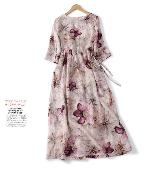 人気推薦ロングスカート大人 上品 花柄プリント綿麻ワンピース レディース ワンピース 50代 60代 ファッション 薄手 夏のお出かけに