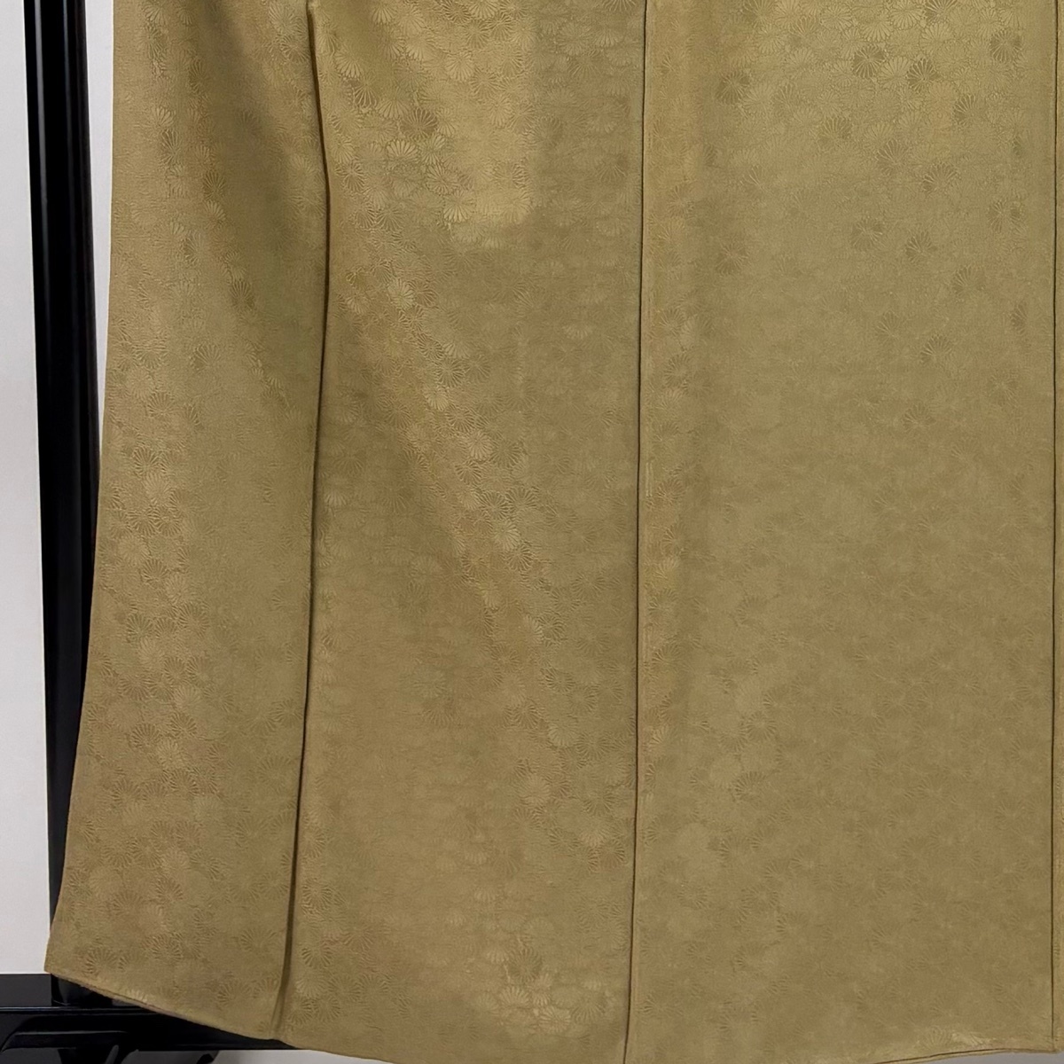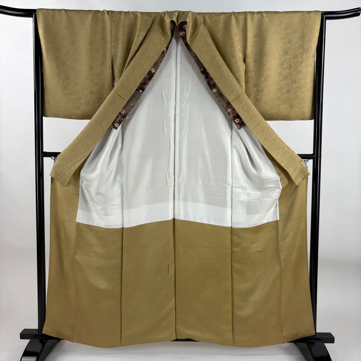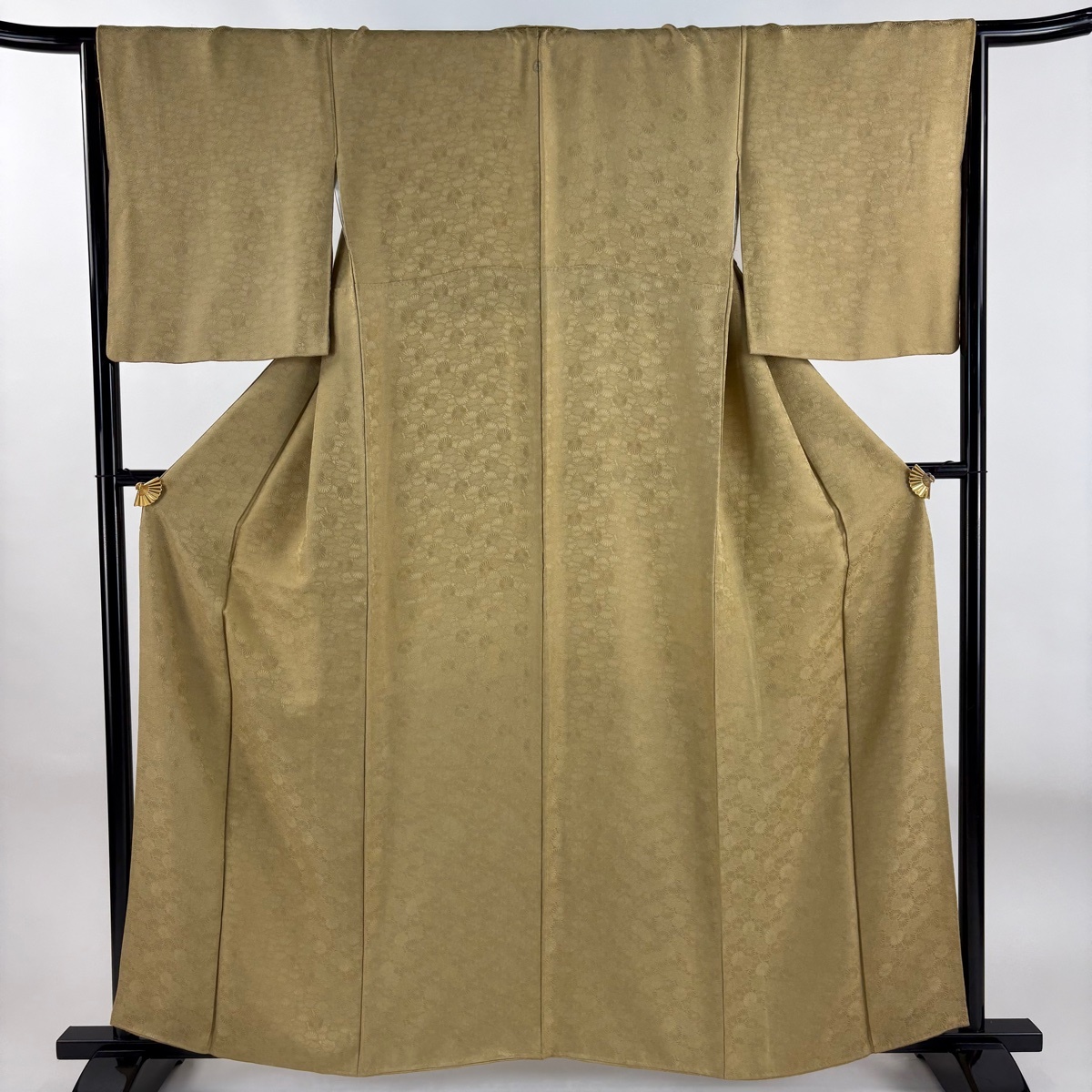| 色無地 秀品 地紋 菊 ベージュ 袷 身丈158.5 裄丈65.5 M 正絹 【中古】 |