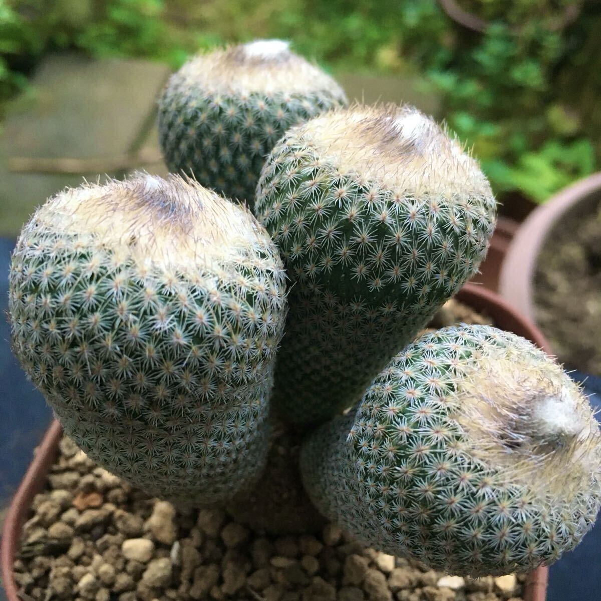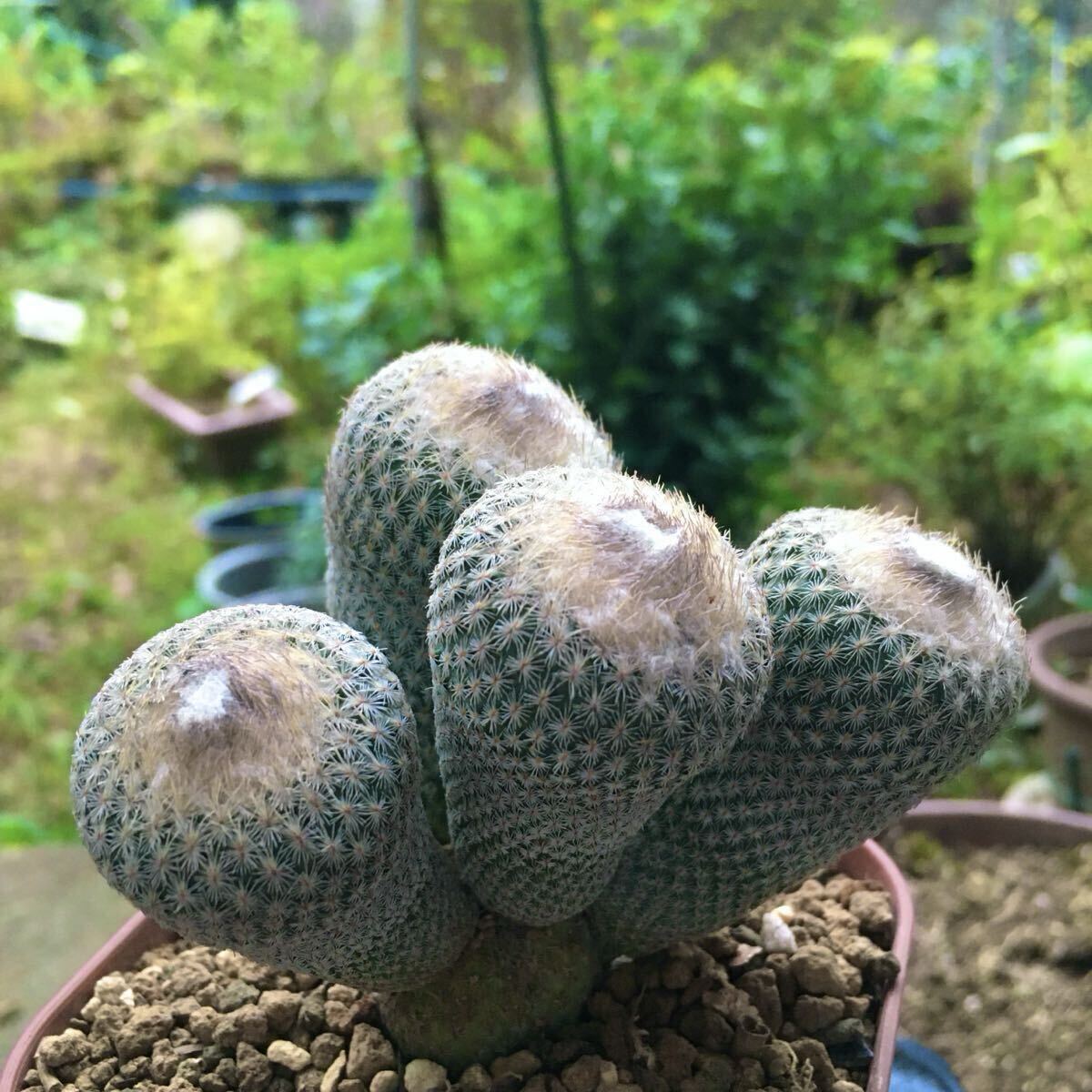 月面に生えていそうな見た目の小さな株に、小さなトゲと刺座をぴったり生やした、真っ白なフォルムがとても美しい品種です。