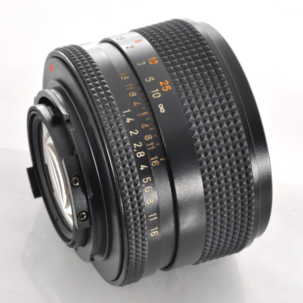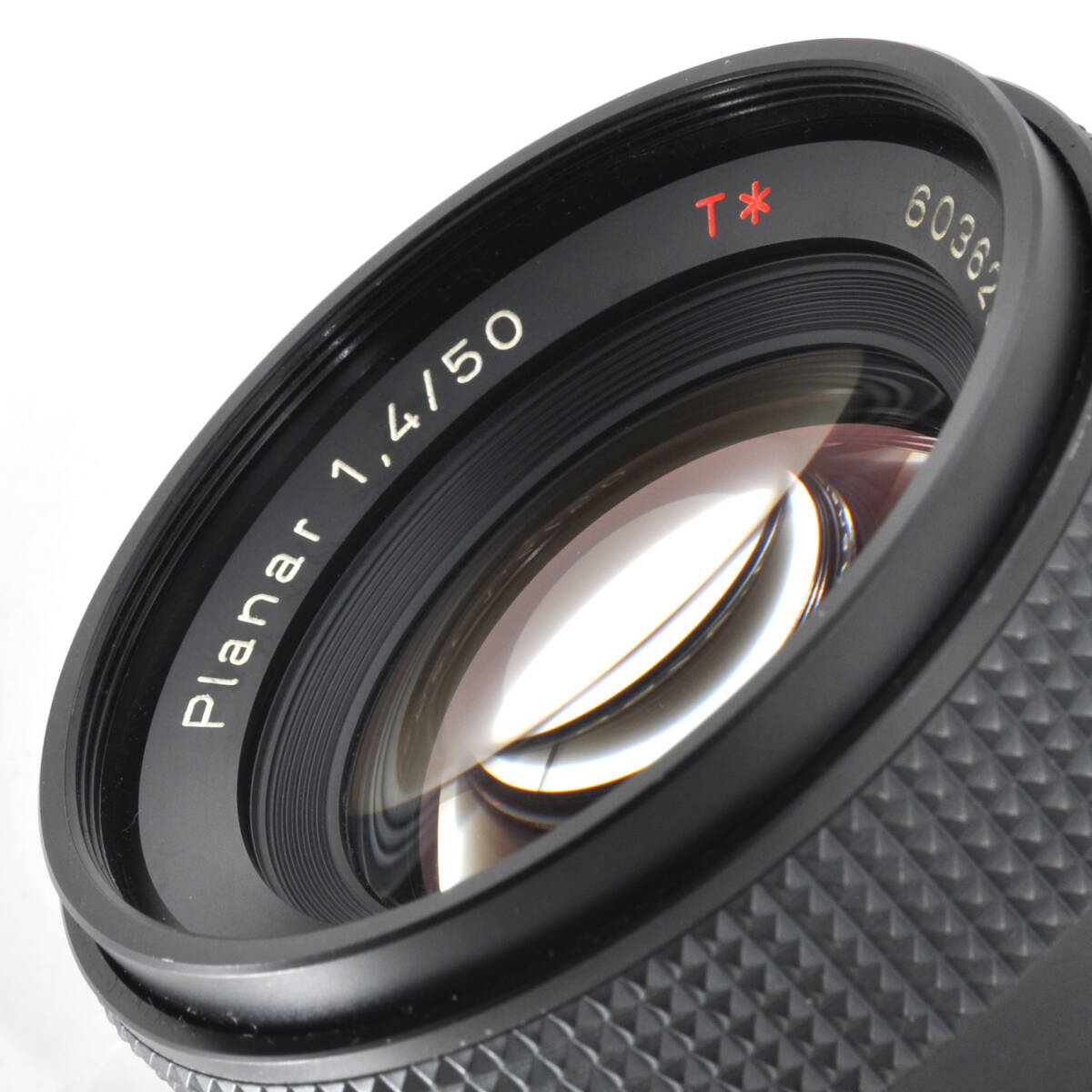 Contax Carl Zeiss Planar 50mm F1.4 T*は、開放F1.4の明るさと美しいボケ味が魅力の標準レンズです。T*コーティングにより高いコントラストと優れた発色を実現し、ポートレートや日常撮影で活躍します。