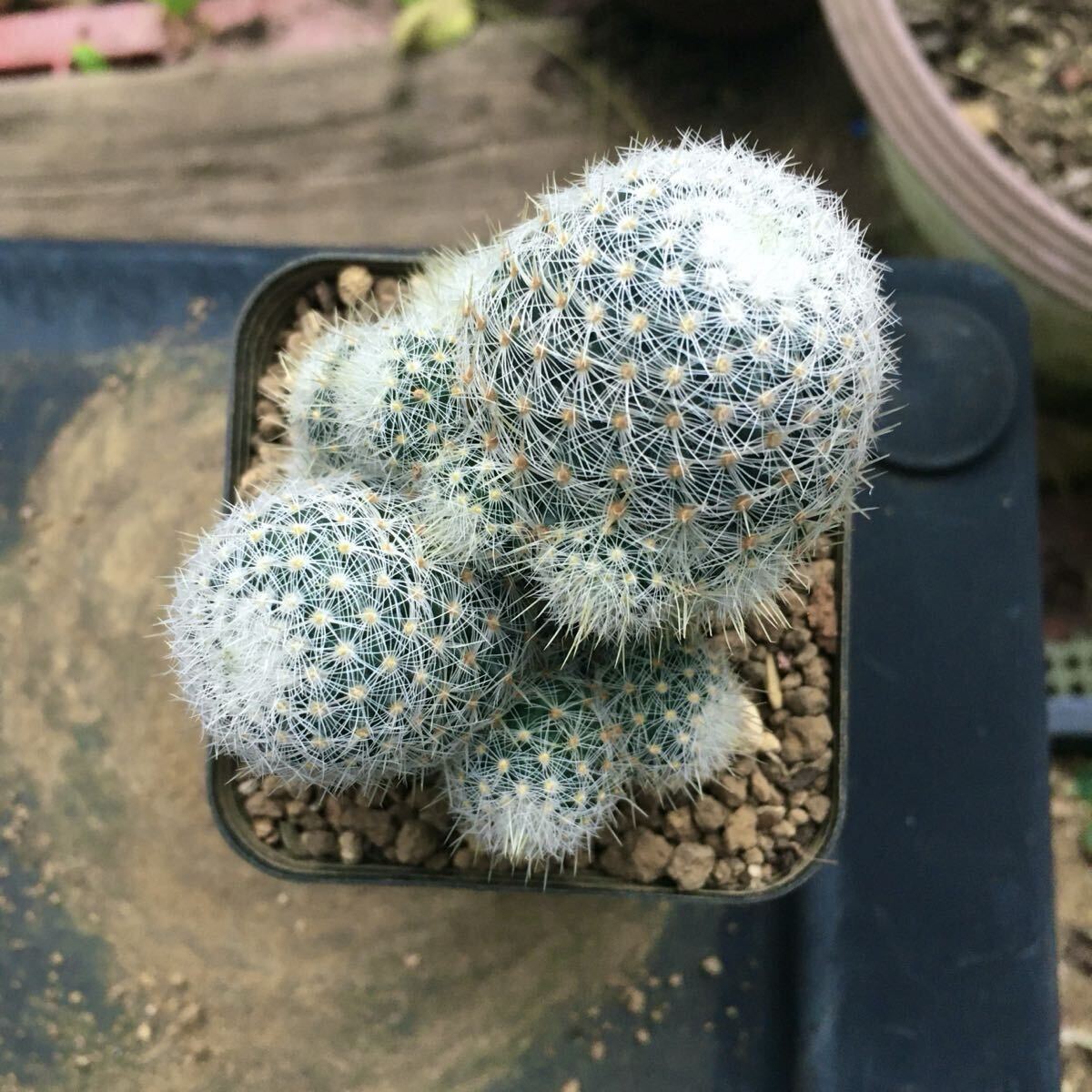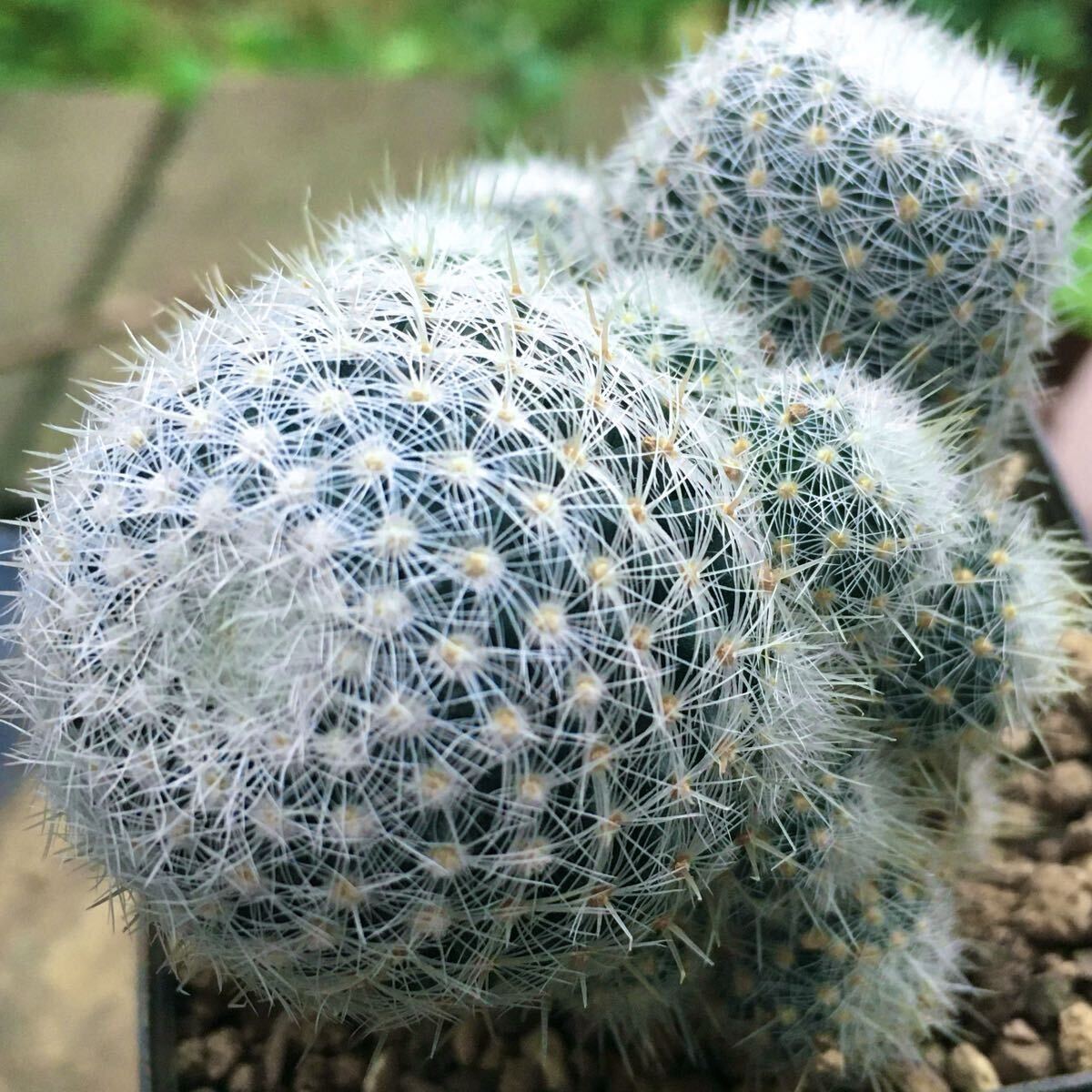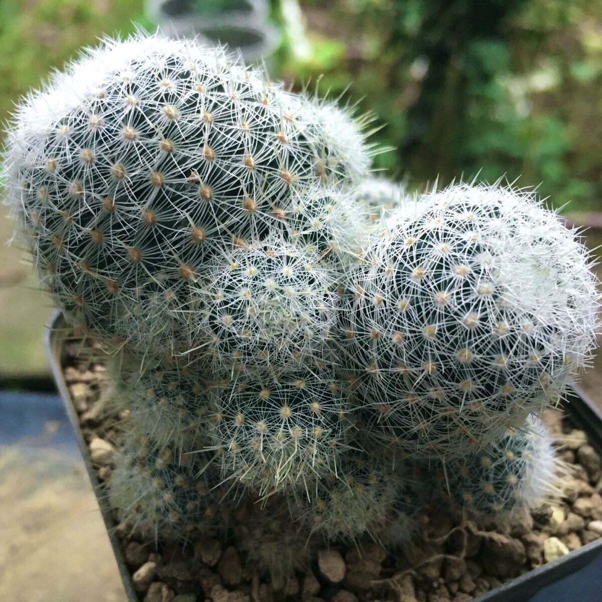 白い柔らかい刺と、子吹き群生する特徴を持ちます。