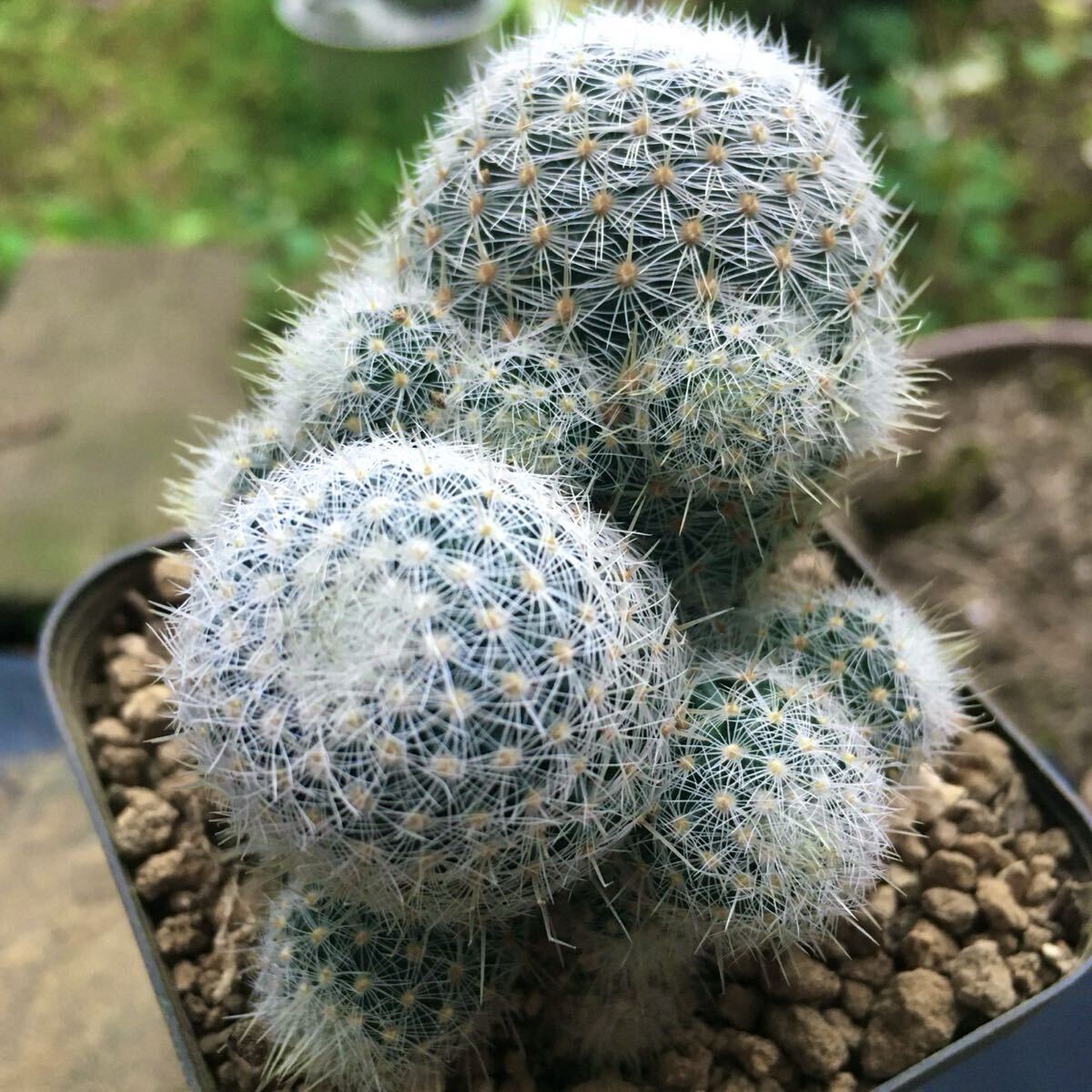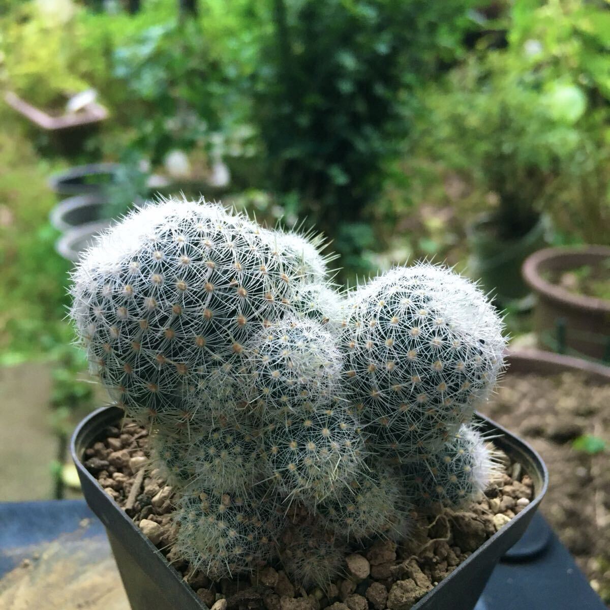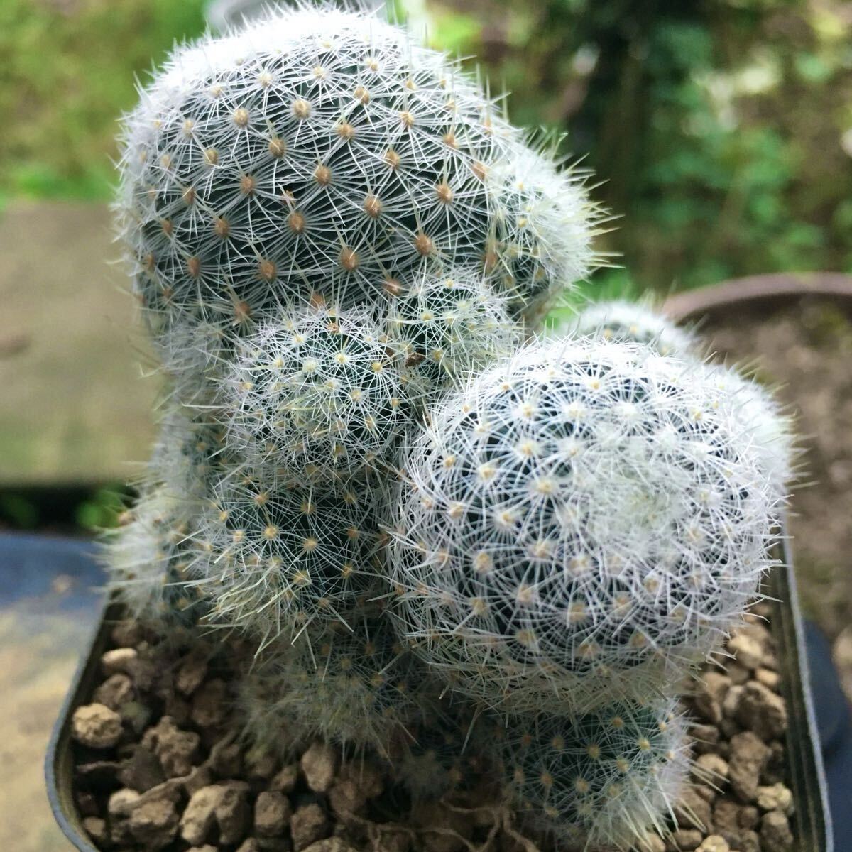 白い柔らかい刺と、子吹き群生する特徴を持ちます。