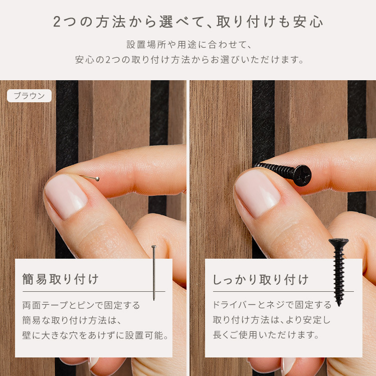 ・取付けの際は両面テープとペンチ(虫ピン取付け用)、ドライバー(ネジ取付け用)のいずれかが必要になります。