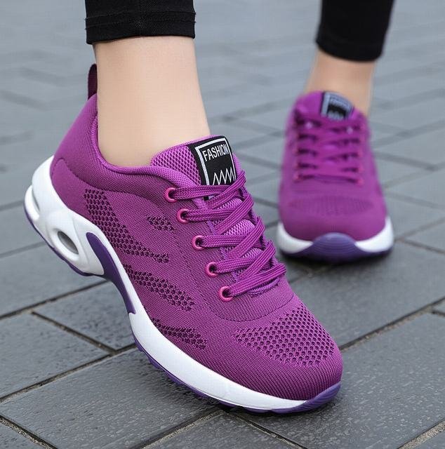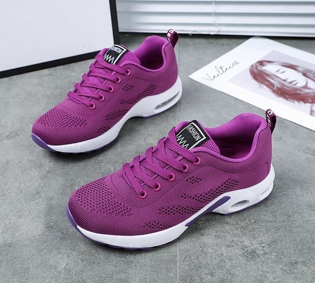 ★スニーカー レディース メッシュ レディース靴 スポーツ アウトドア 春秋 軽量 散歩シューズ エアースニーカー 通気性 紫24cm