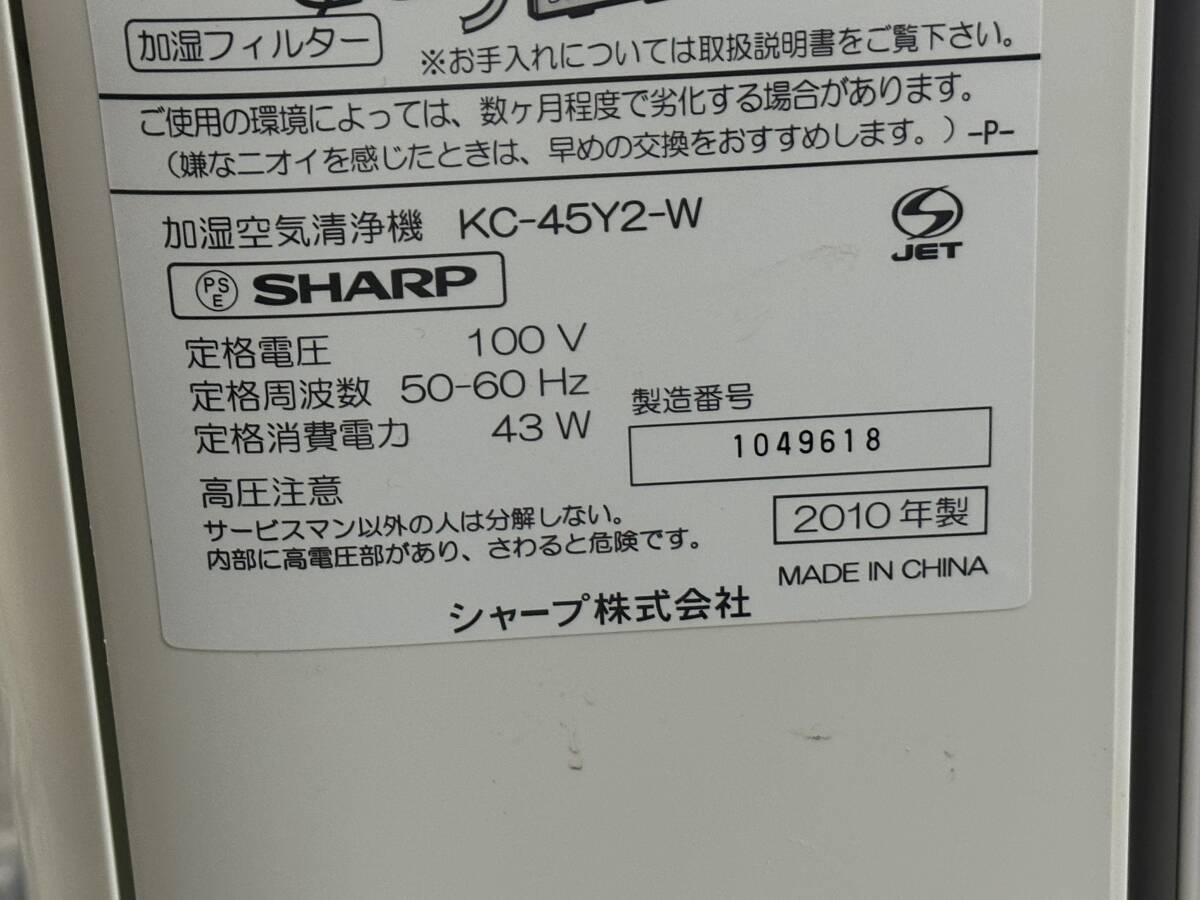 Q7156 通電OK/現状渡し☆売切☆SHARP シャープ KC-45Y2-W 加湿空気清浄機 2010年製