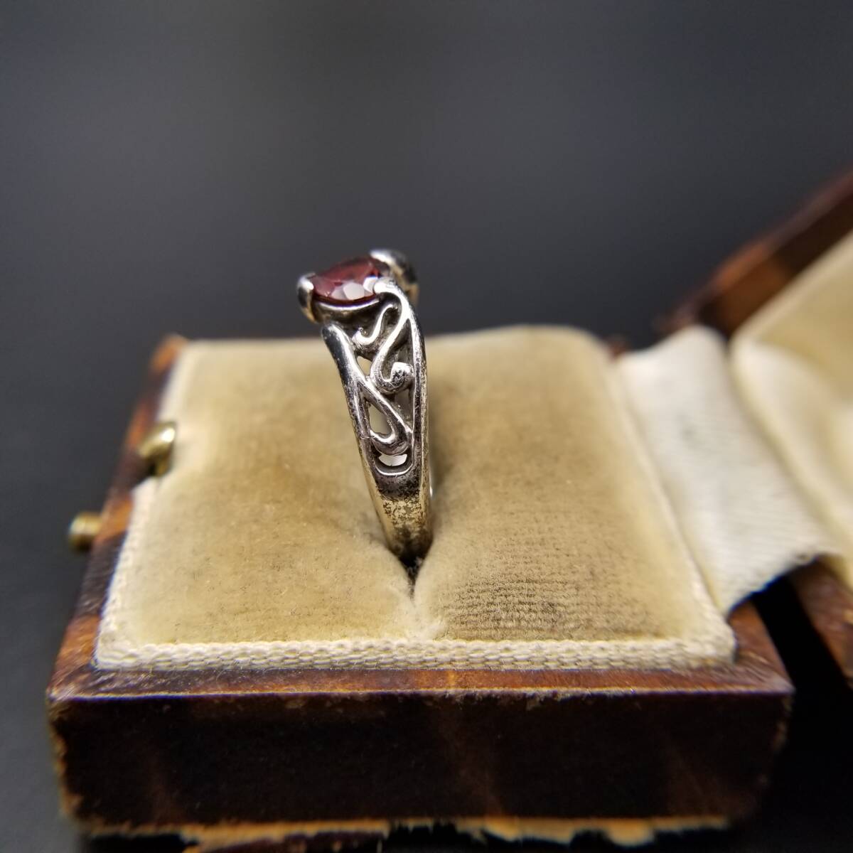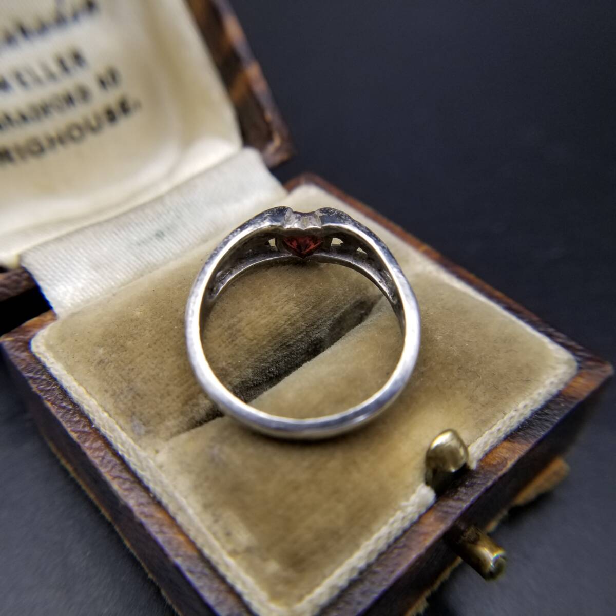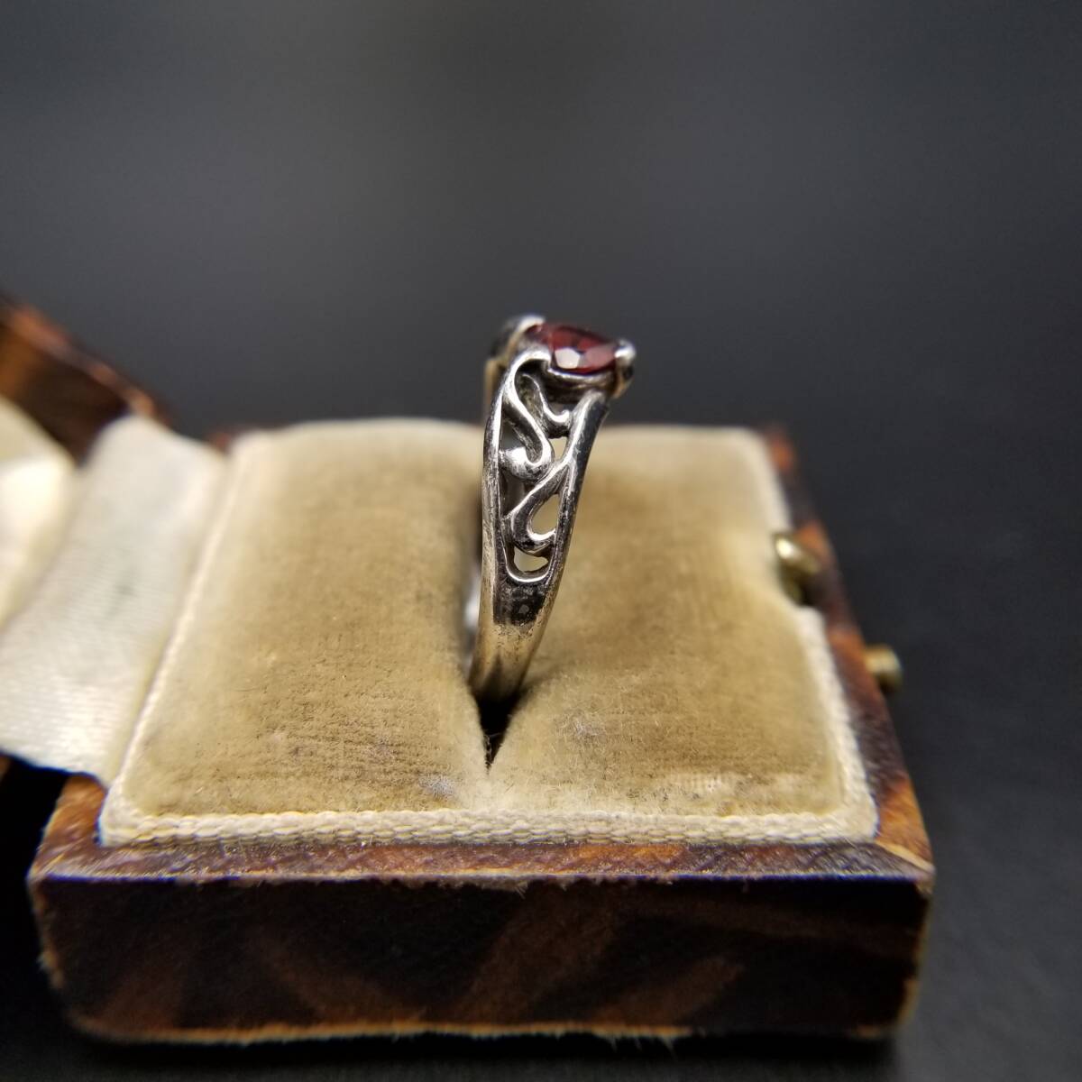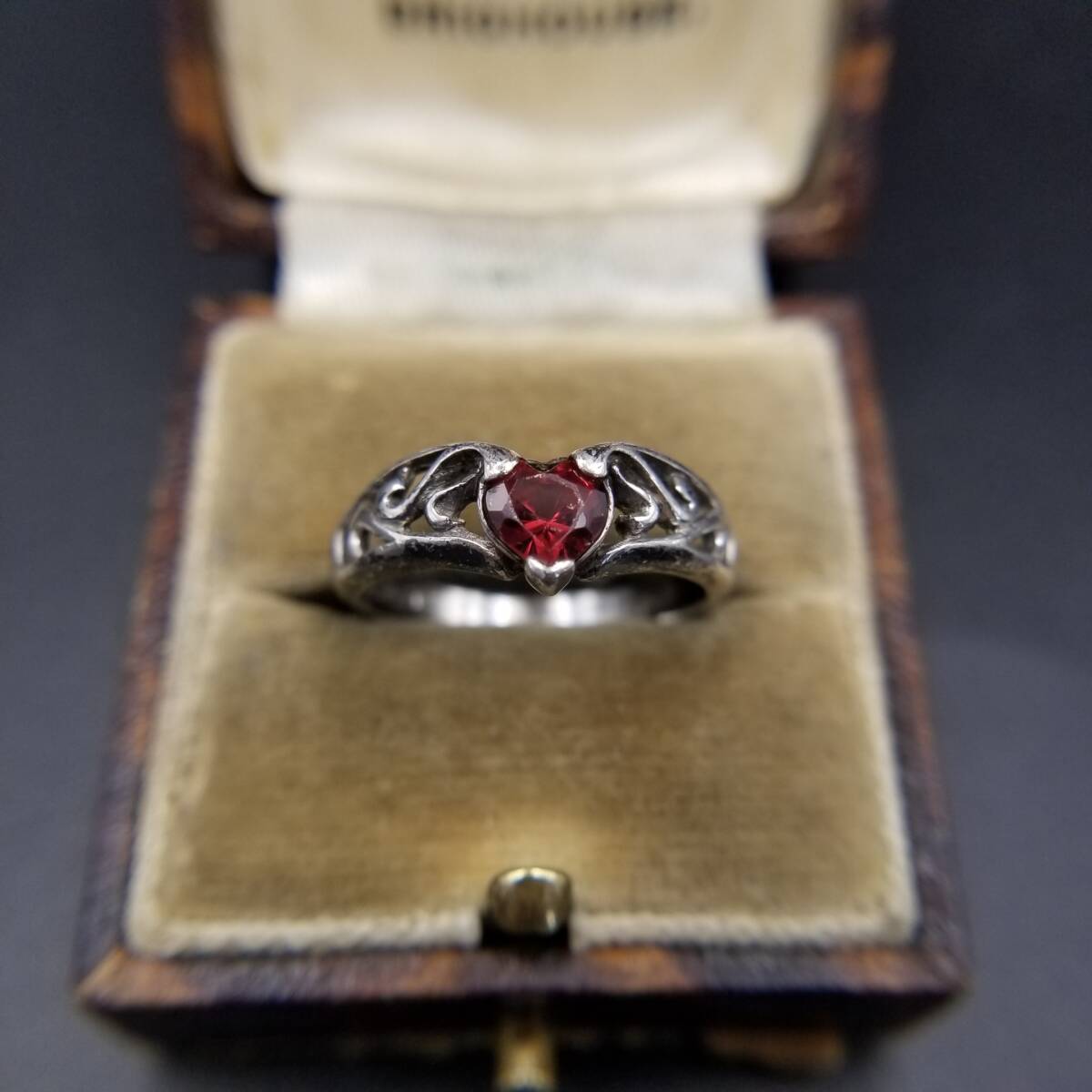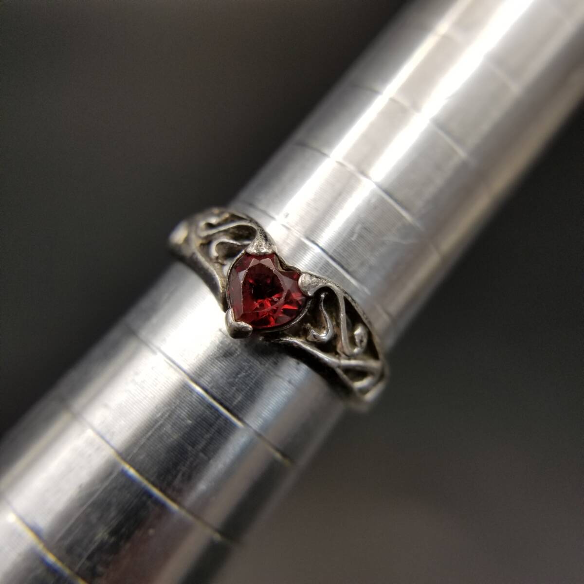 赤いハート 唐草模様 オープンワーク 925 シルバー ヴィンテージ リング 銀 指輪 クラシカル 細幅 レトロ キュート Y25-B