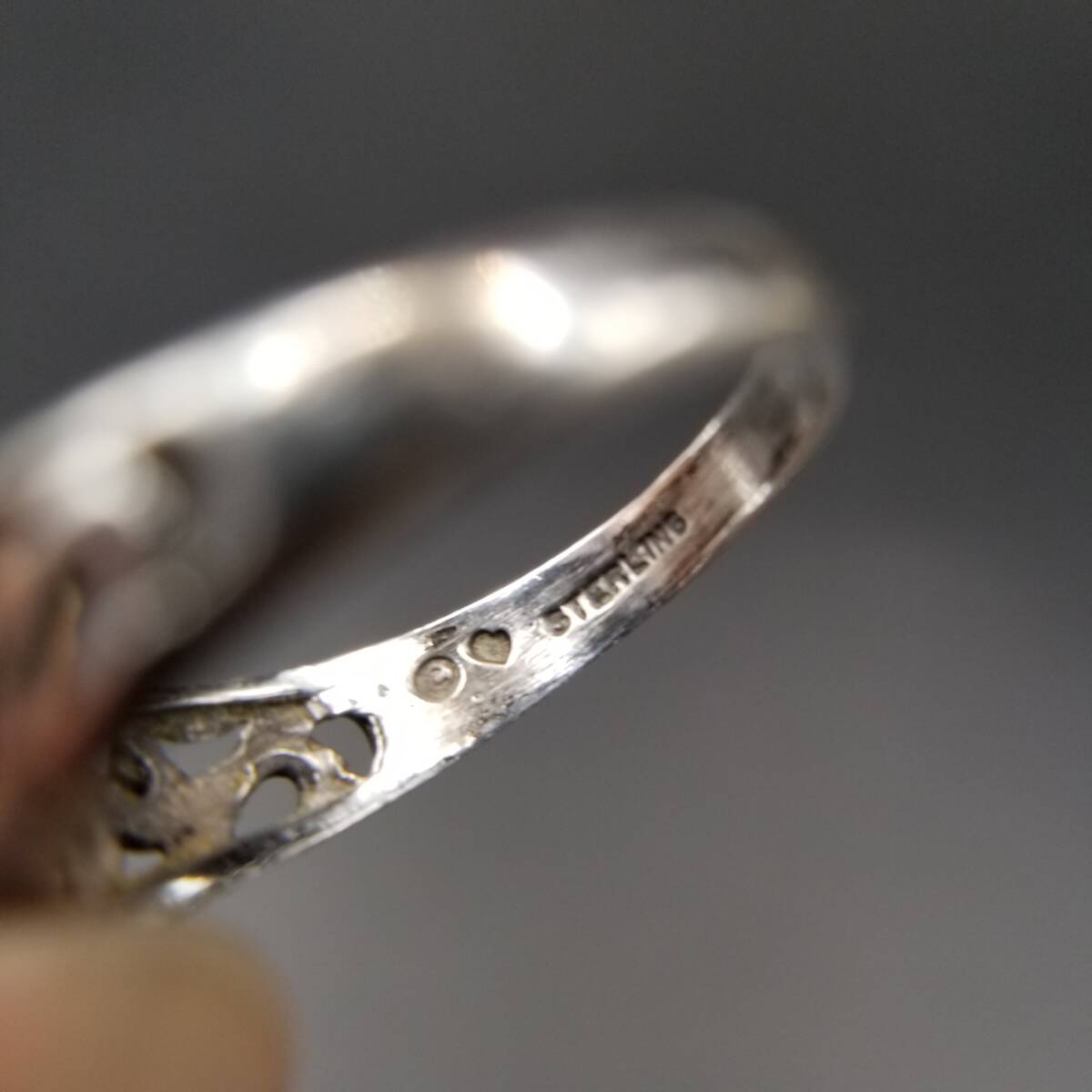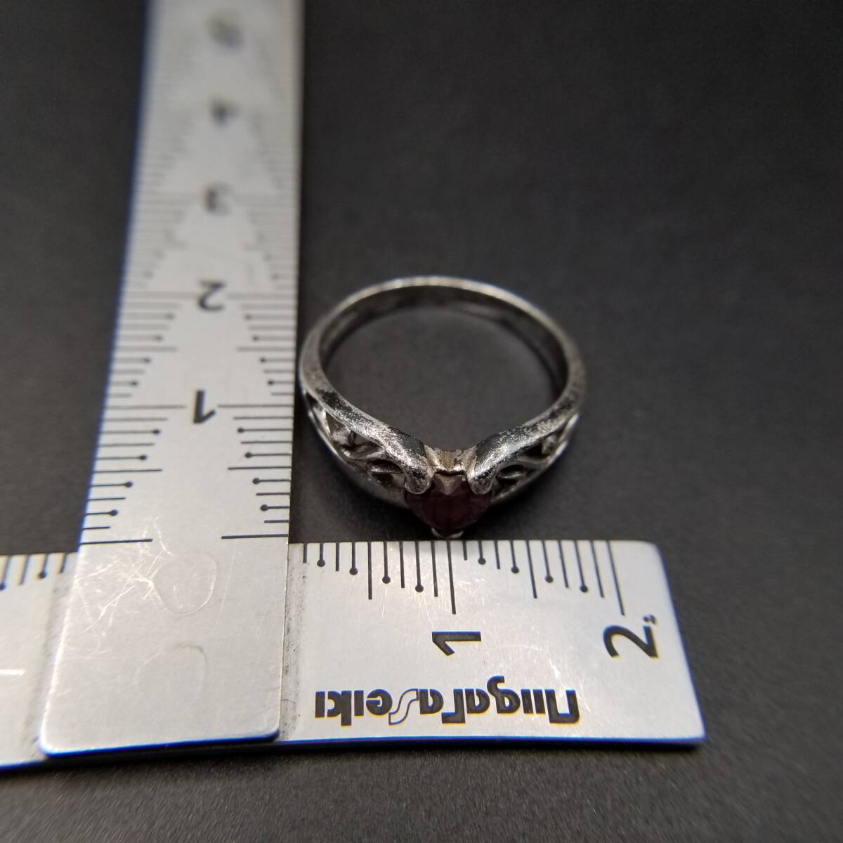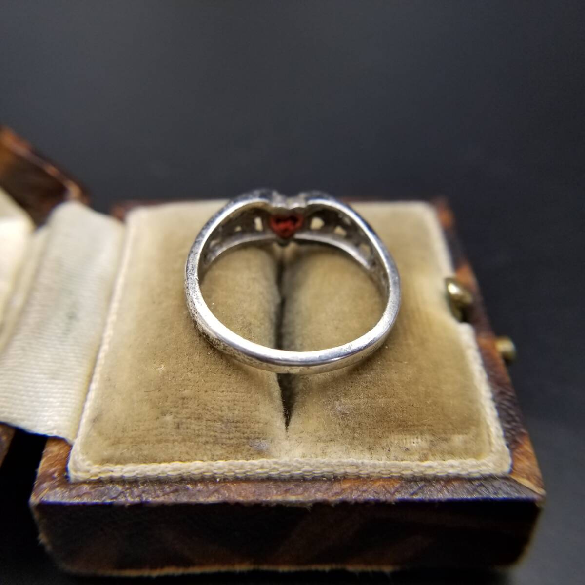 赤いハート 唐草模様 オープンワーク 925 シルバー ヴィンテージ リング 銀 指輪 クラシカル 細幅 レトロ キュート Y25-B