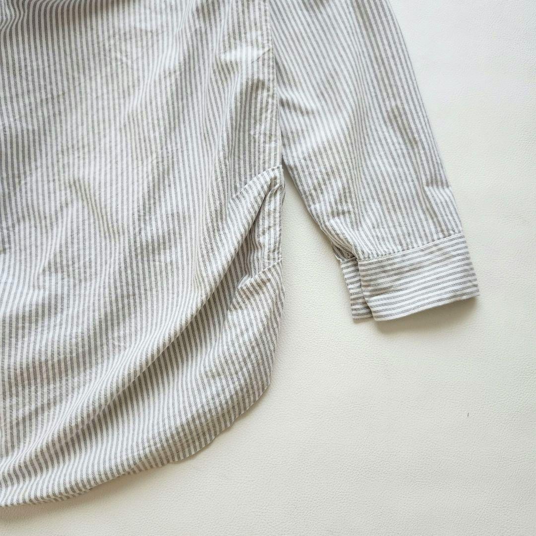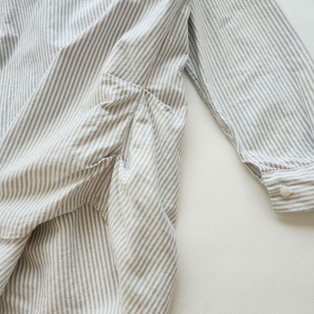 ボタン下辺りのカットと脇裾のタックで立体的なおしゃれな変形デザインになっています。
