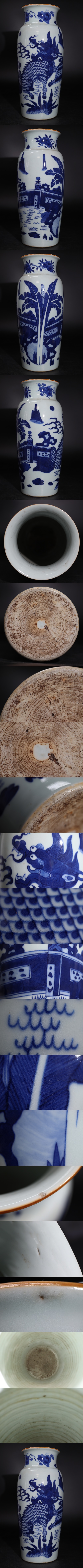 | 時代 染付 麒麟紋 花瓶 清代 頃 / 中国美術 新渡 青花 花器 壺 煎茶飾 .G2890 |