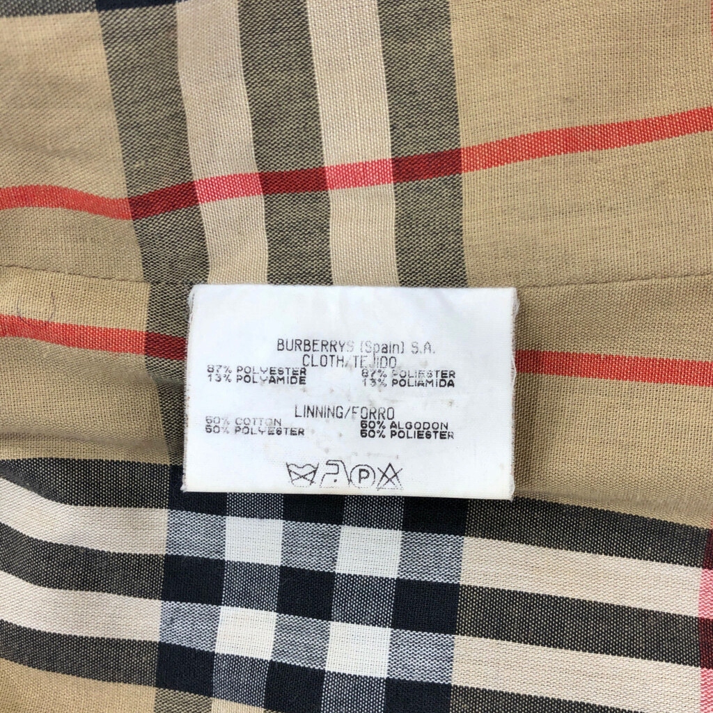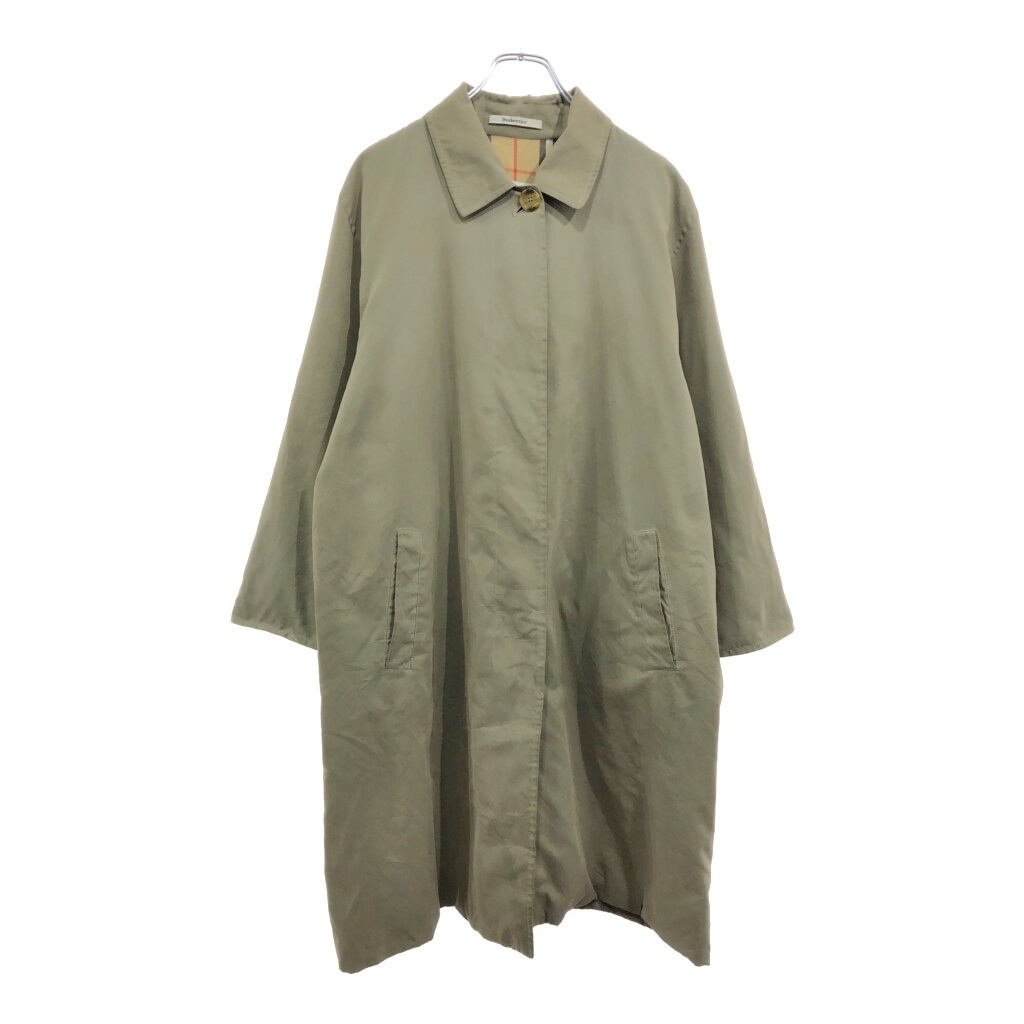| 【商品管理番号】 V5147 【ブランド】 Burberrys/バーバリーズ 【サイズ】 XL相当 【実寸サイズ】 肩幅:約47cm 着丈:約99cm 身幅:約60cm 袖丈:約55cm 【主な素材】 表地 : ポリエステル 裏地 : 13791 【色】 カーキ 【仕様】 生産国 : スペイン製 90年代 ステンカラーコート 【状態】 汚れ:袖、もも 特記事項:ベルト欠損 | |||