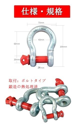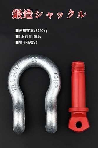 • 【ねじシャックル 】ねじ込みタイプのスタンダードなシャックルです。1本の重量:510g 鍛造シャックル 3.25t 弓型 安全係数:4