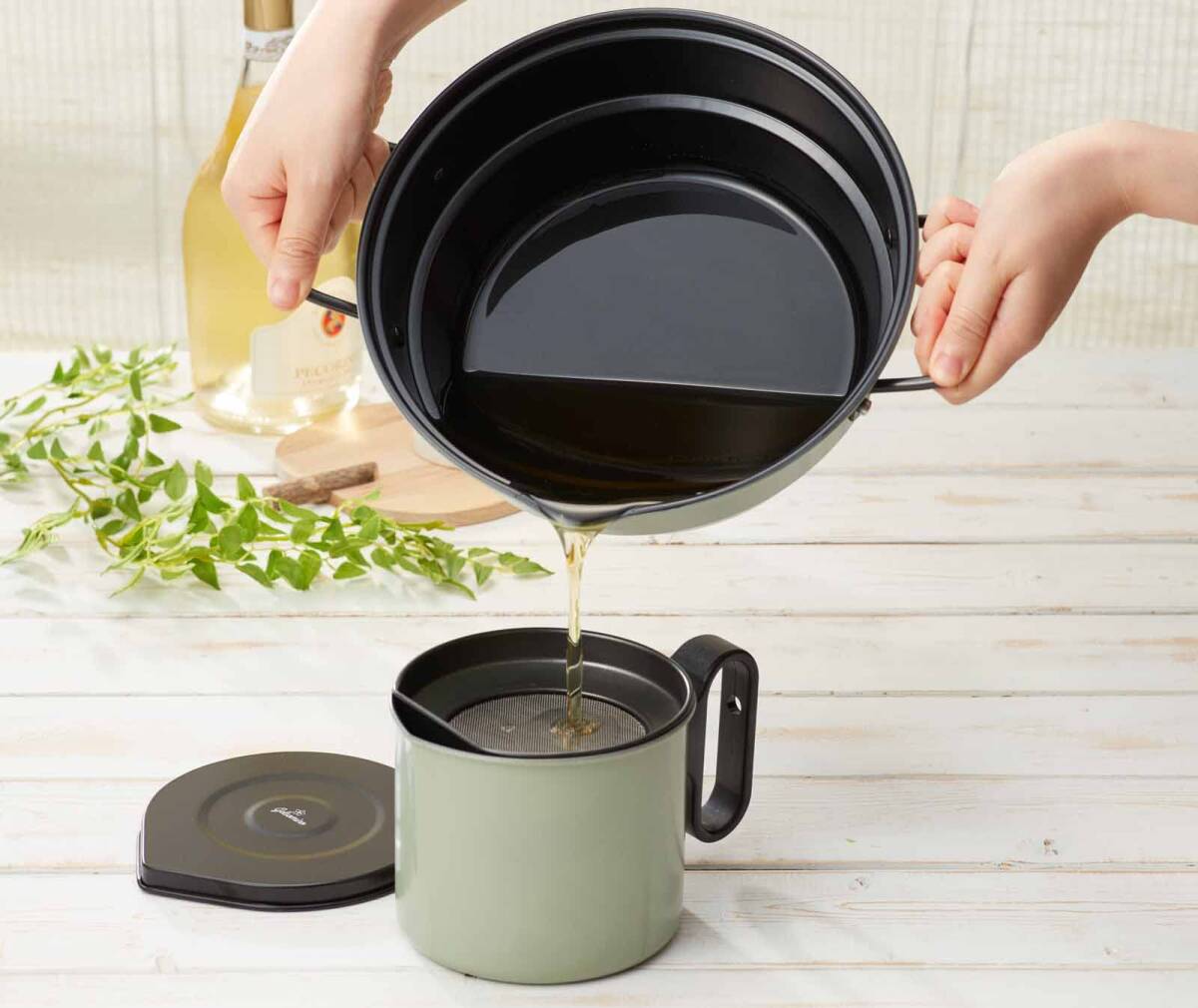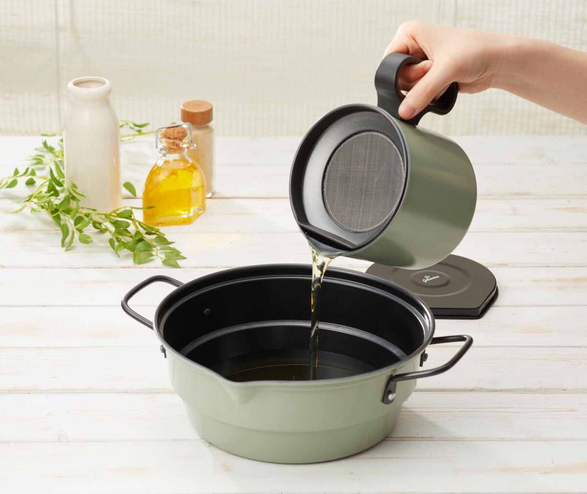 説明 こんなのほしかった、miniタイプオイルポット 使いやすい小型0.8Lサイズ オイルサーバーとしてもちょうどいい コンパクトで邪魔にならず、置く場所を選ばない 1枚絞りで油モレ無し 握ったときに手が本体に当たらないのもgood お洒落なくすみグリーンカラー SGマーク 製品安全協会適合品