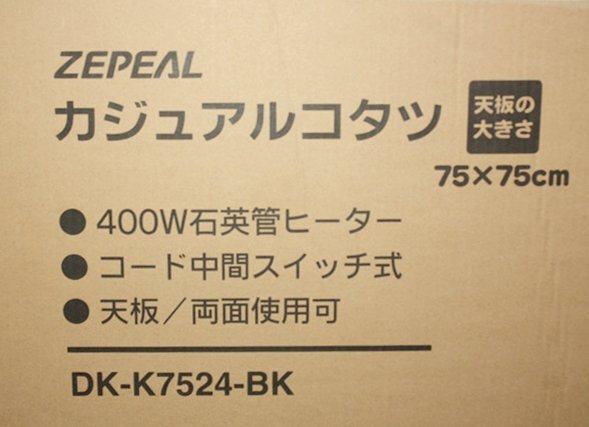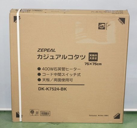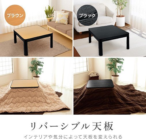 未開封 カジュアルコタツ 75×75cm 正方形 リバーシブル天板 ブラック DK-K7524-BK 中間スイッチ付き 木目調 ゼピール ZEPEAL