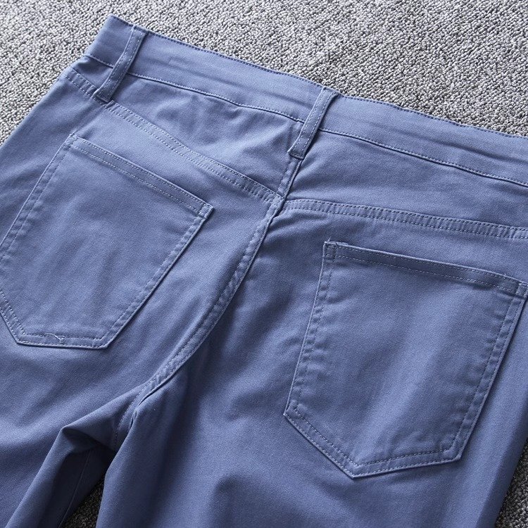 究極の体験!国内未販売 新品 メンズ スラックス 春秋 形態安定 ビジネス 防シワ タイトフィット 伸縮性 ストレートパンツ/青色 T5072-L