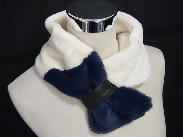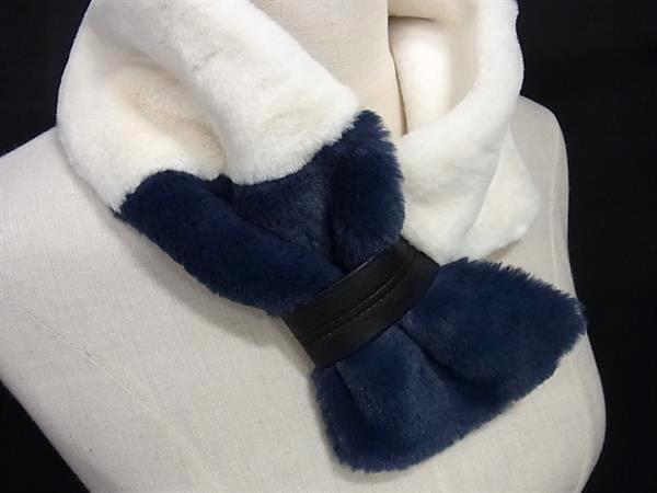 ■新品■未使用■ FURART ファーアート ポリエステル100% ティペット マフラー 防寒具 レディース アイボリー系×ネイビー系 DG0869